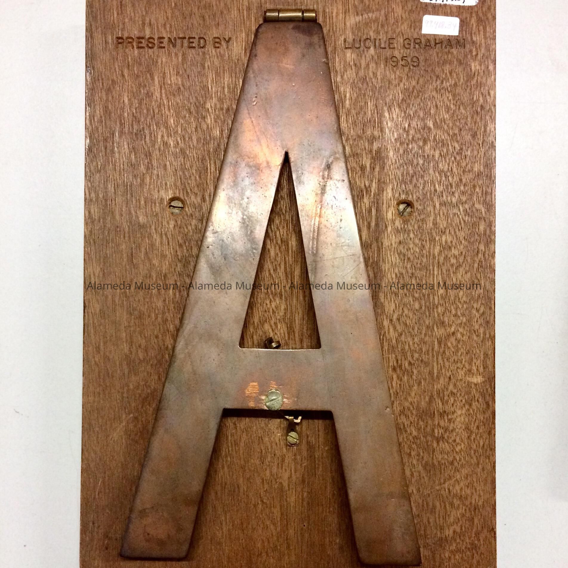 History: Plaque representing the Alameda Branch of the American Fuchsia Society presented by Lucille Graham in 1959.
