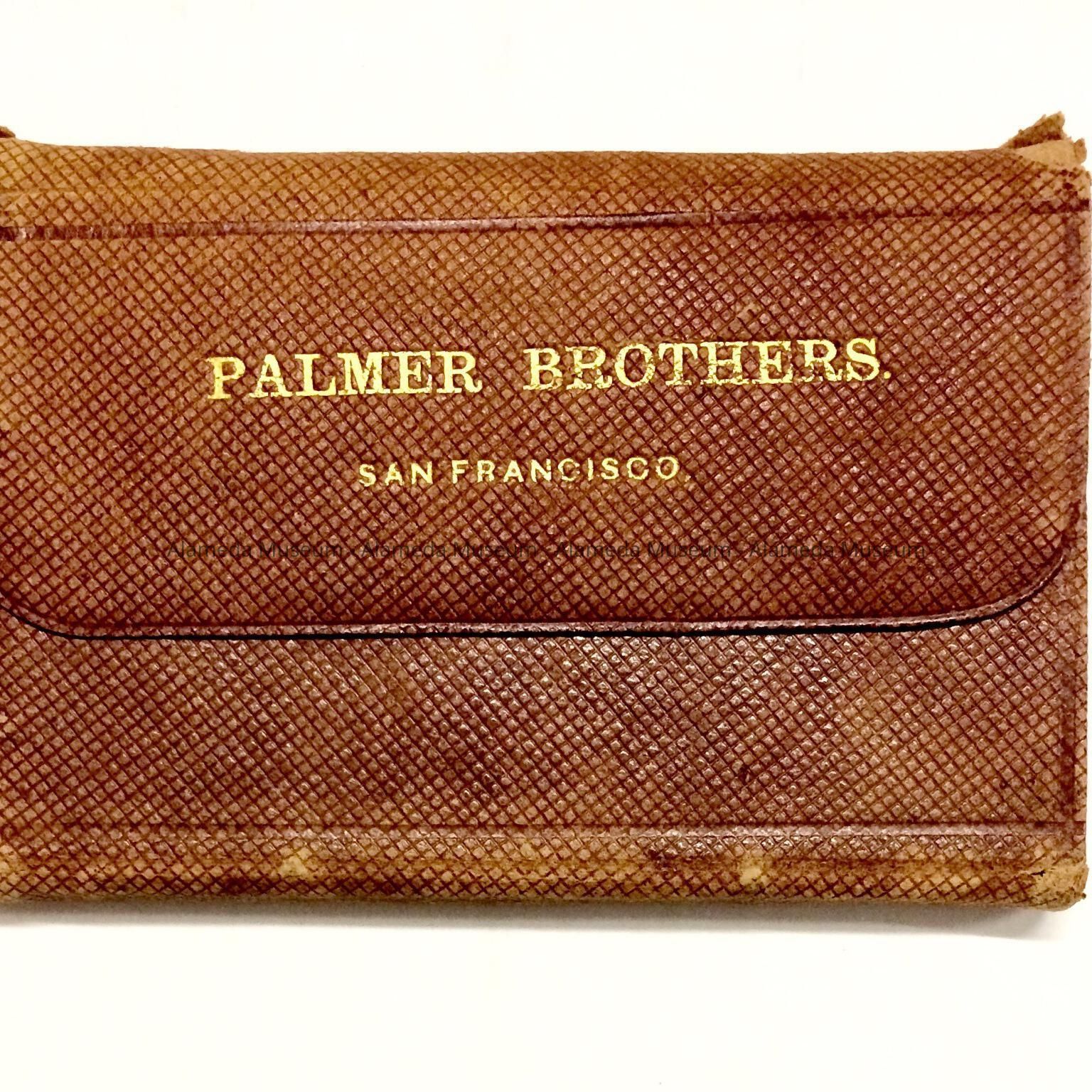 DESCRIPTION: A POCKET-SIZE NOTEBOOK COVERED IN BROWN LEATHER WITH NO CAPTION. THE INTERIOR HAS A PAGE ATTRIBUTING THE PRINTING, ETC., TO THE HELD BROTHERS & DRY GOODS.
