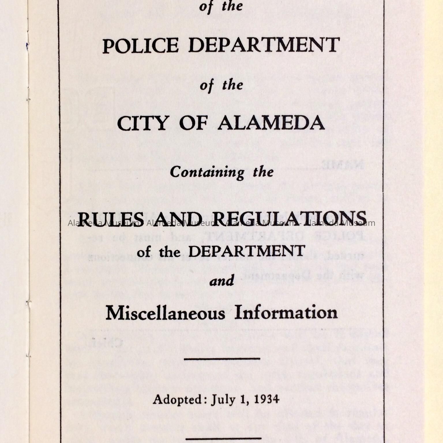 Subject Category: City of Alameda; Police Dept.