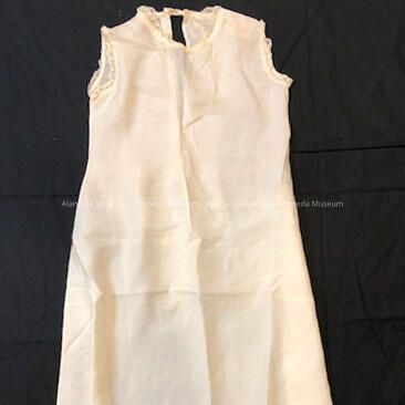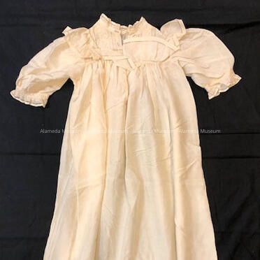 History of Object: Baby dress worn by Roberta or Doris, daughters of Mr. & Mrs. Samuel M. Haslett, old-time residents of Alameda.