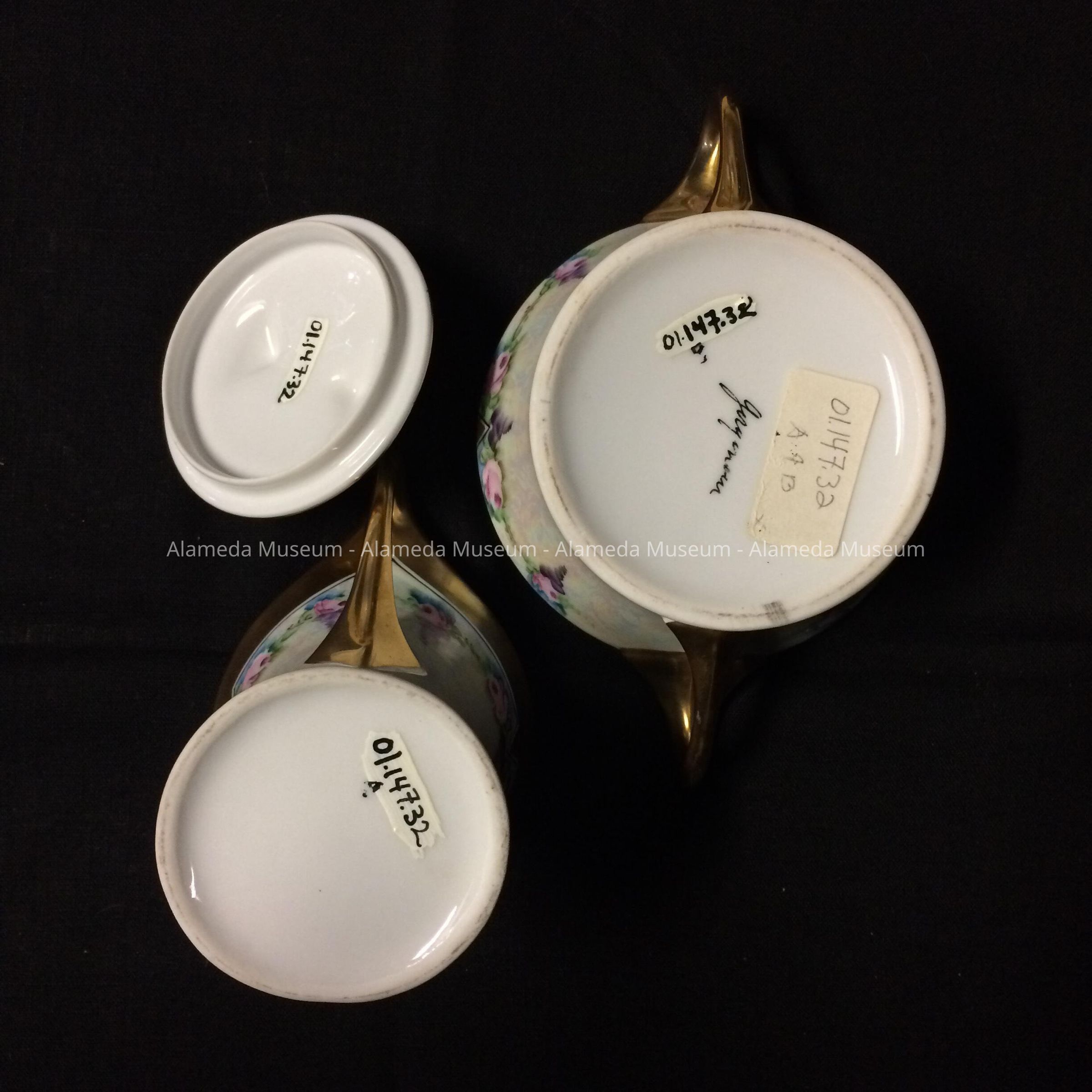 HISTORY OF OBJECTS: CREAM AND SUGAR BOWL SET FROM THE PORCELAIN STUDIO OF THOMAS JORGENSEN AND WIFE, WEBSTER STREET, ALAMEDA, CA.
