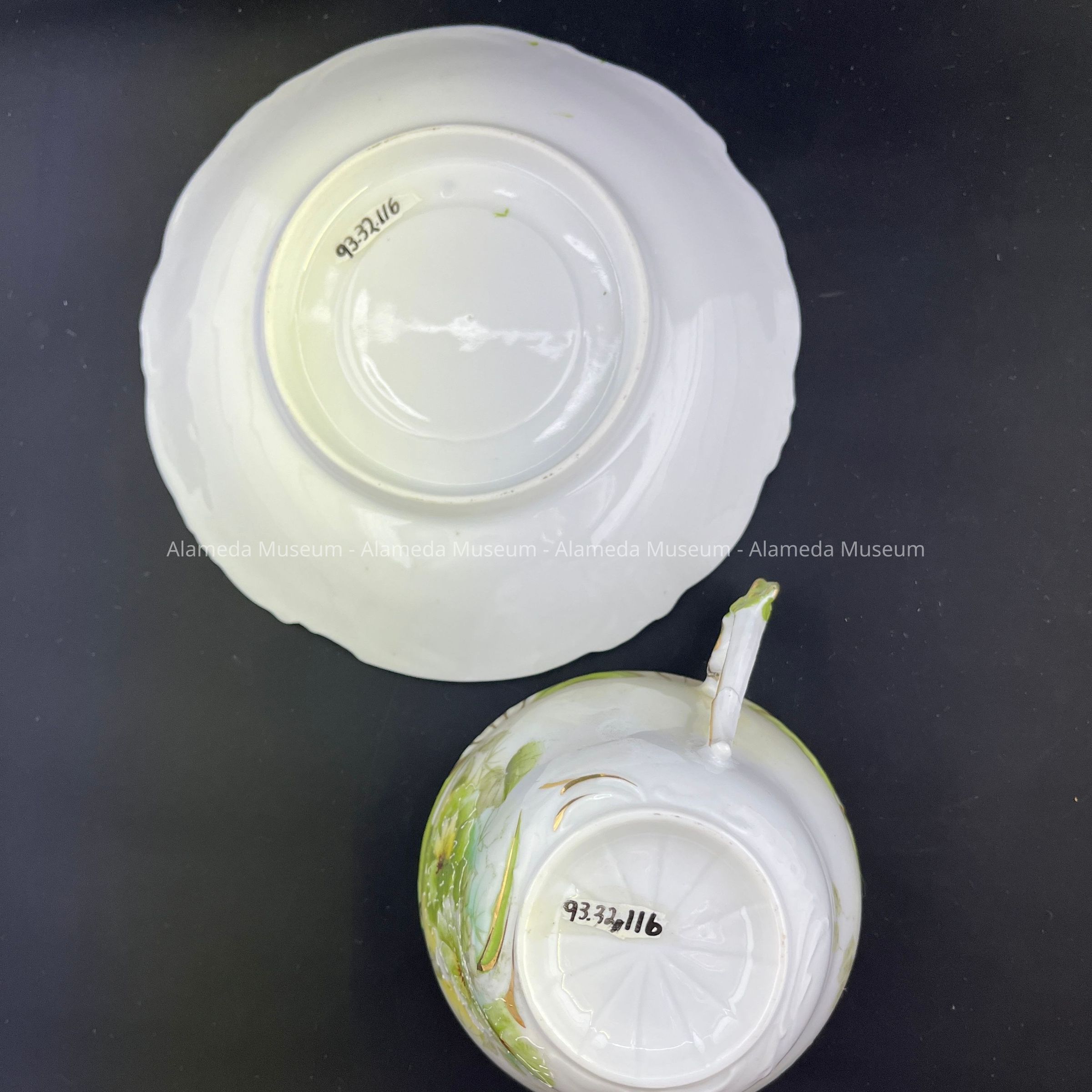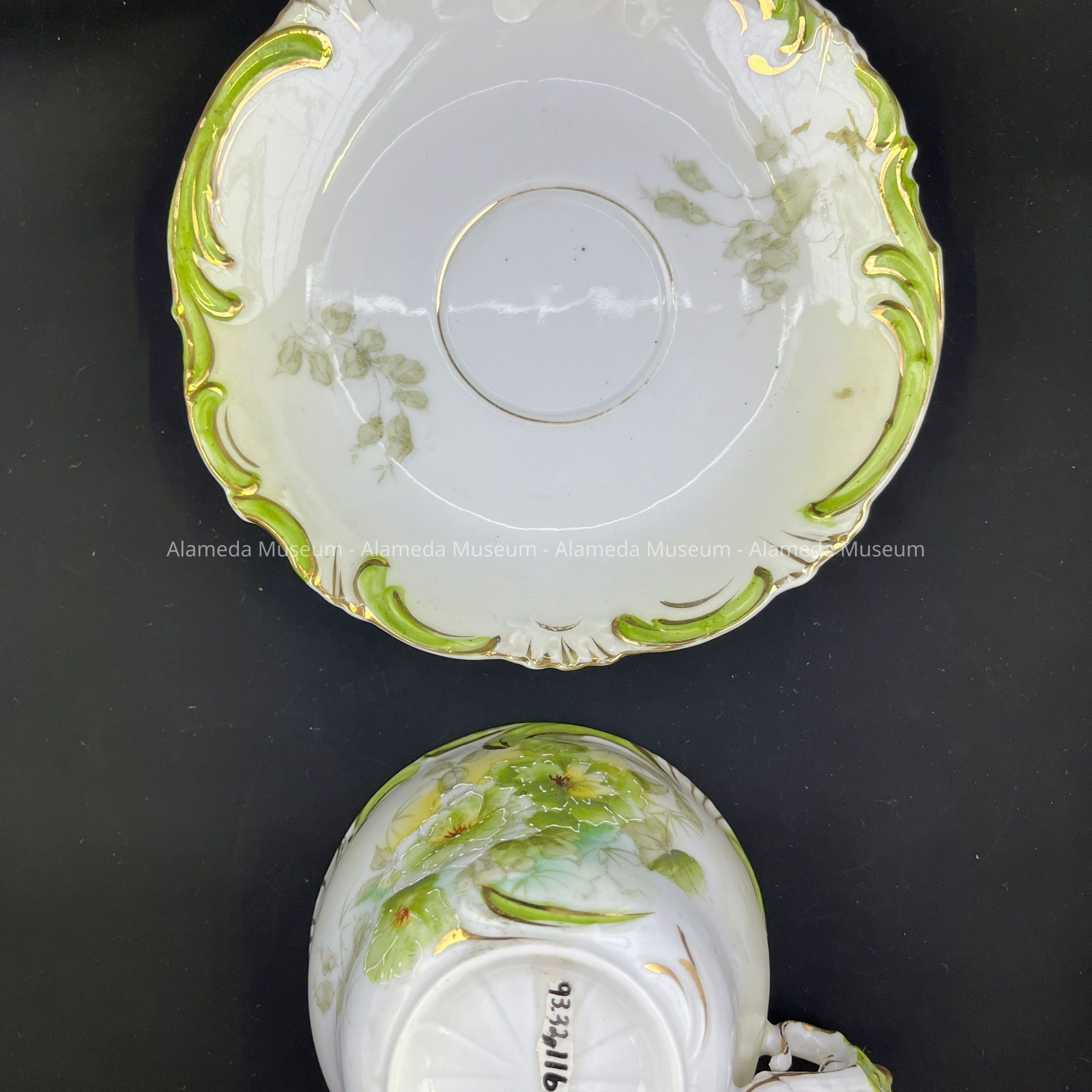 Porcelain cup and saucer with decal and hand painted details, early 1900sEntry/Object ID