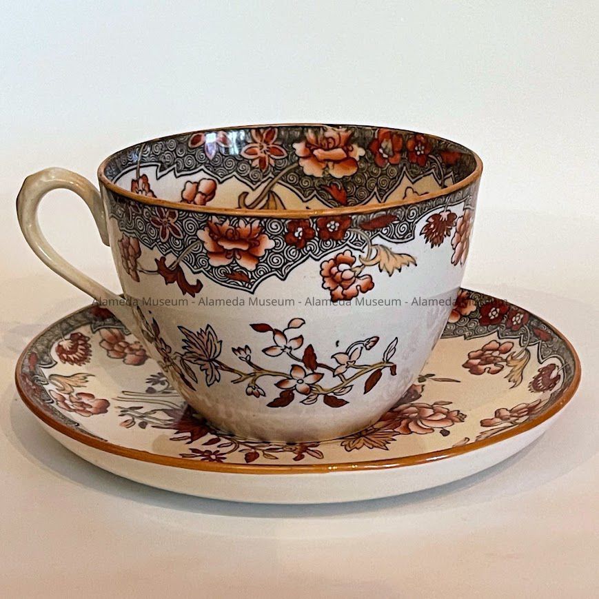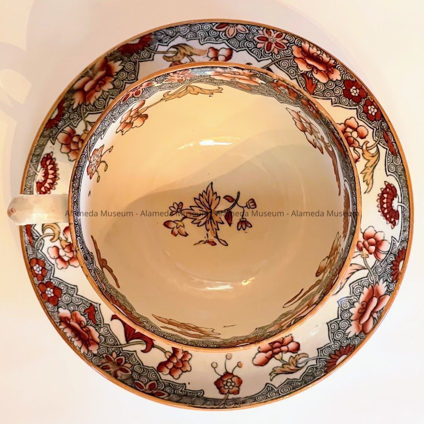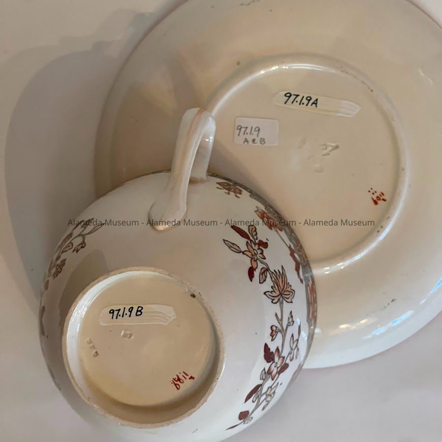 CUP AND SAUCER FROM THE DINING ROOM CHINA CABINET OF THE MEYERS' RESIDENCE.