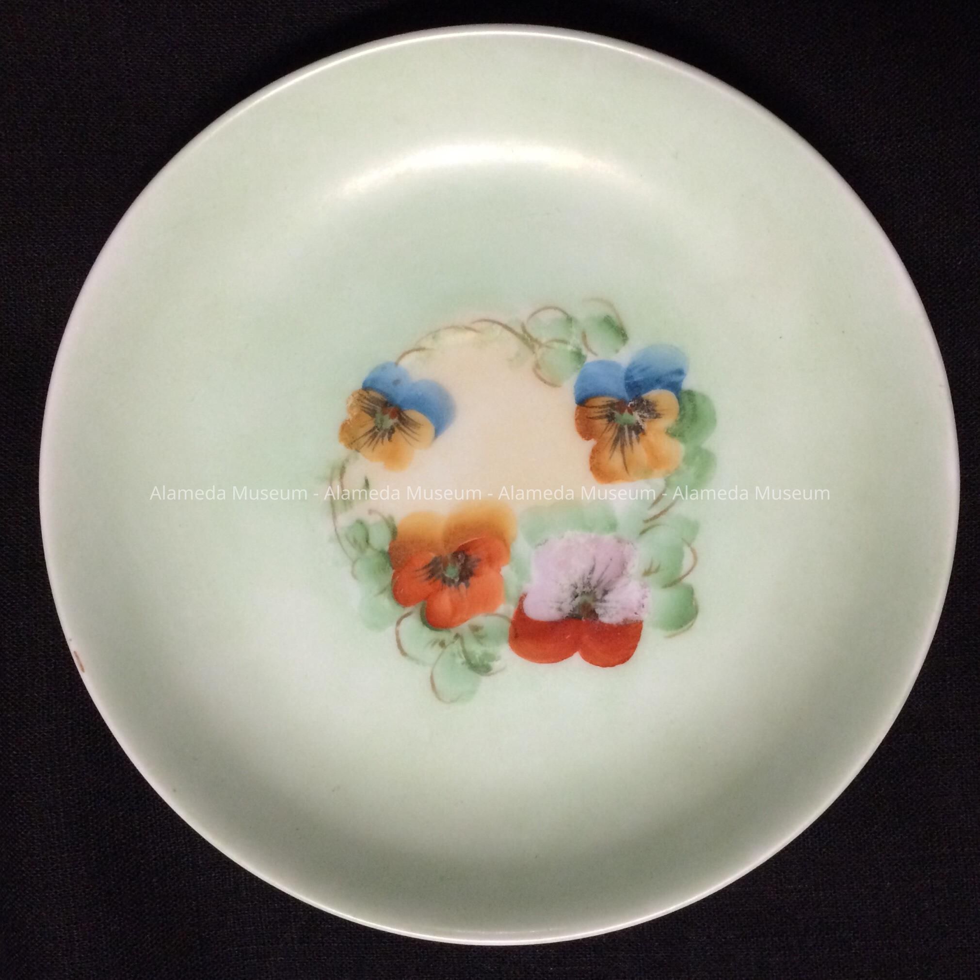 Porcelain saucer handpainted with pansies by Jorgensen, c. 1920sEntry/Object ID