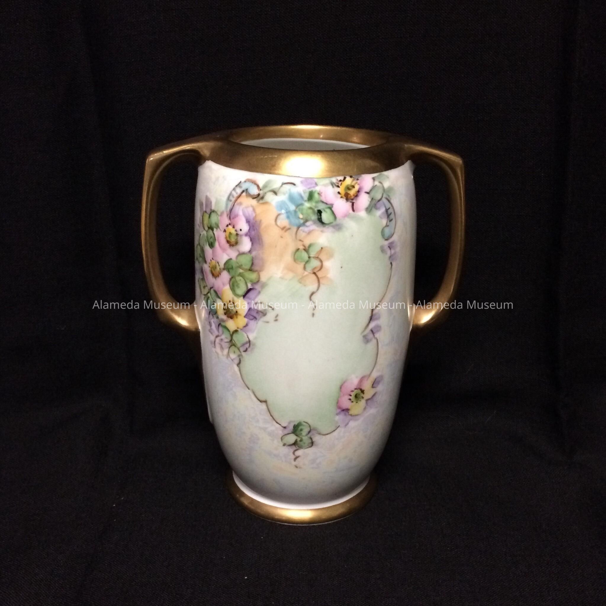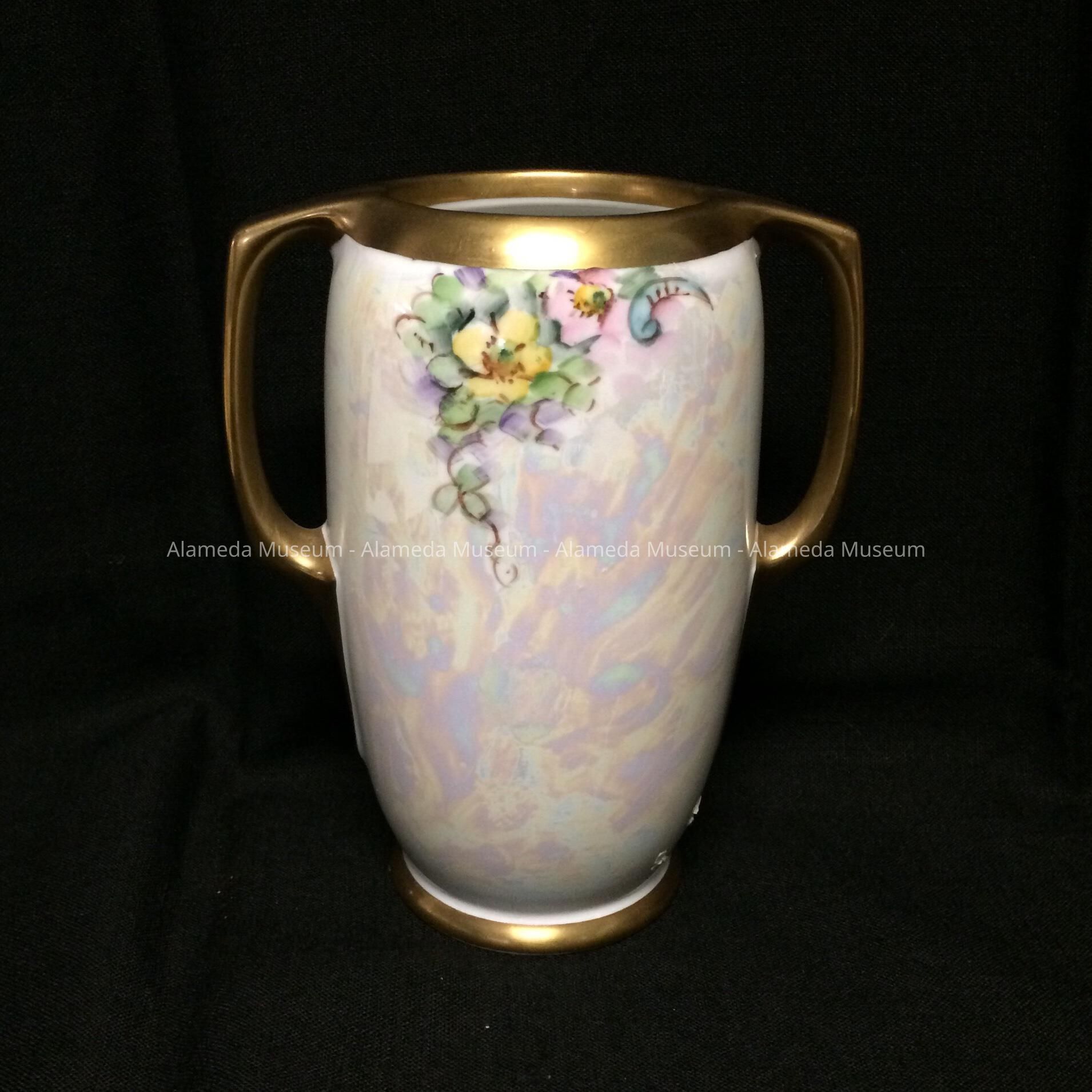 History of Object: A porcelain vase hand painted by Thomas Jorgensen 1878-1948) of Alameda. His home and studio were located on Webster St., Alameda.