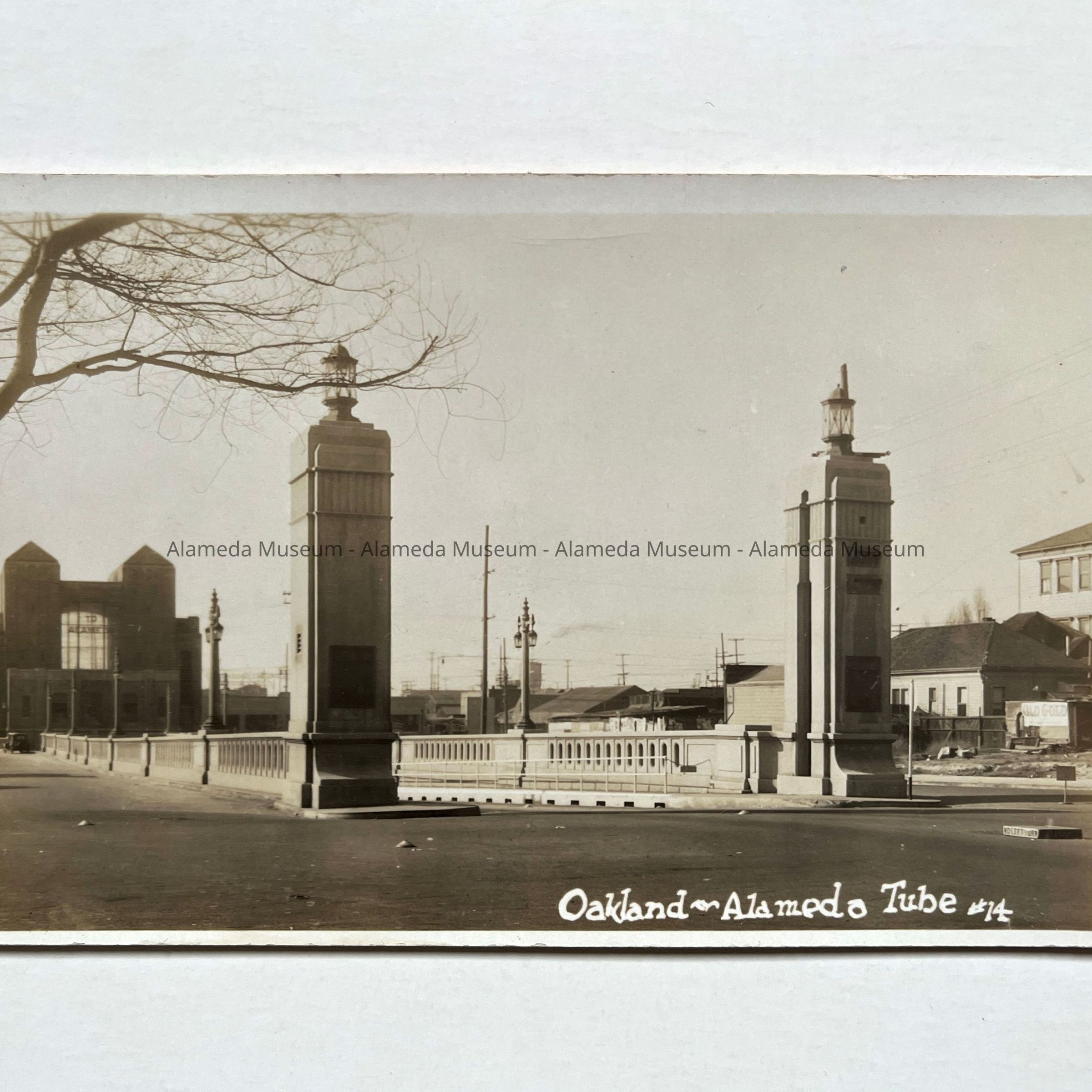 History of Object: A postcard of the Oakland entrance to the Posey Tube, built 1928.