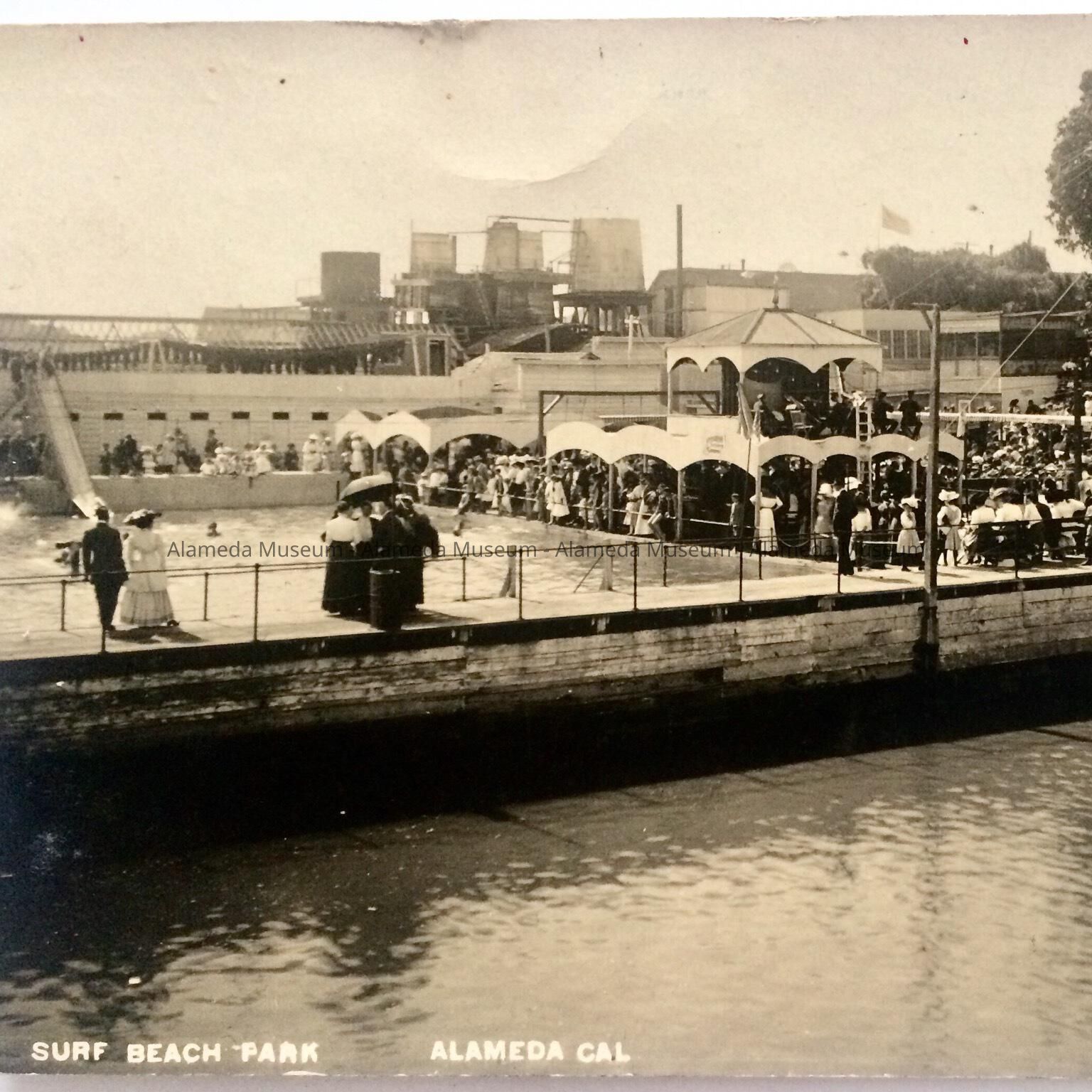 HISTORY OF OBJECT: POSTAL VIEW OF SURF BEACH, ALAMEDA, CALIF. VIEW OF