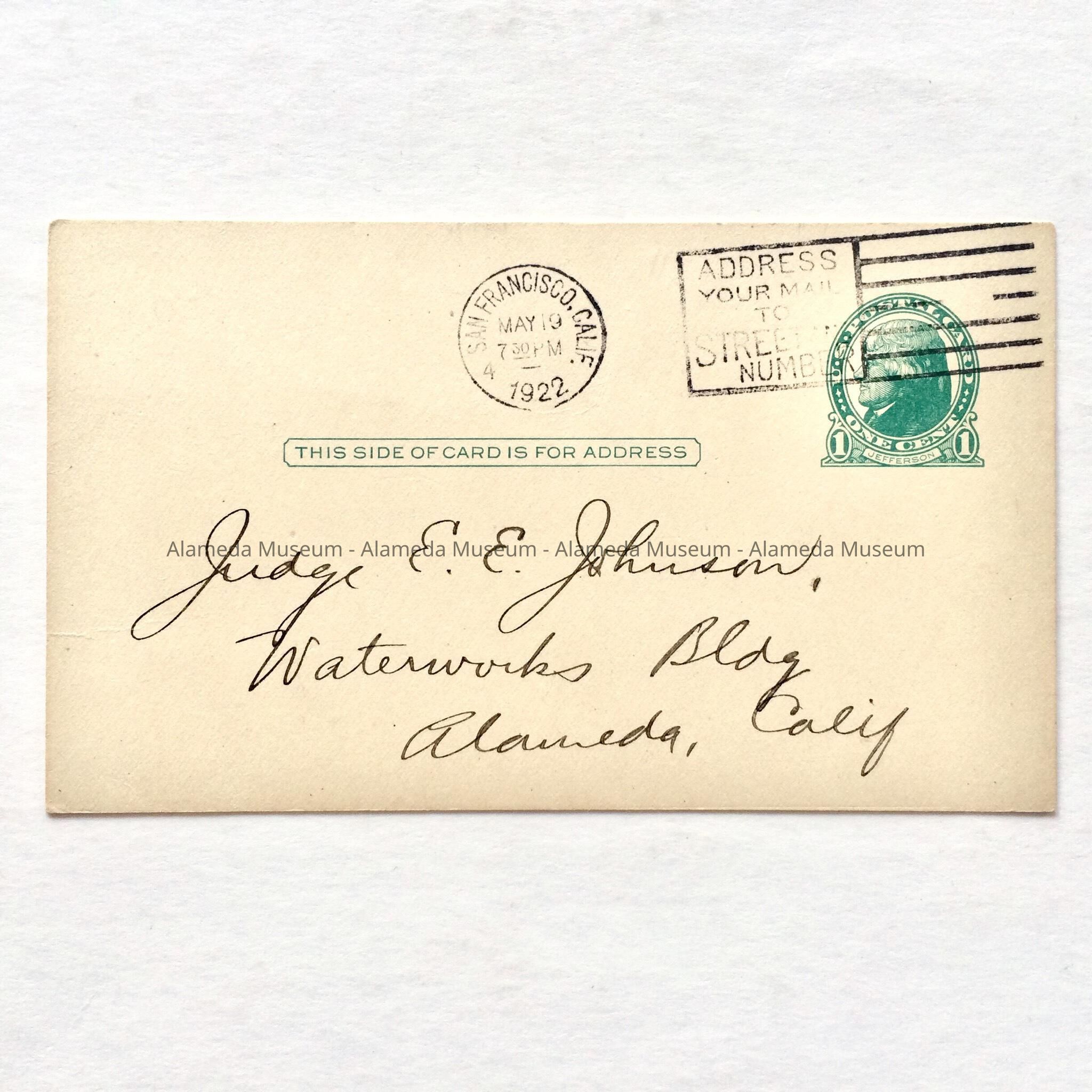 Postal Card to Judge Elmer E. Johnson, Waterworks Building, 1922Entry/Object ID