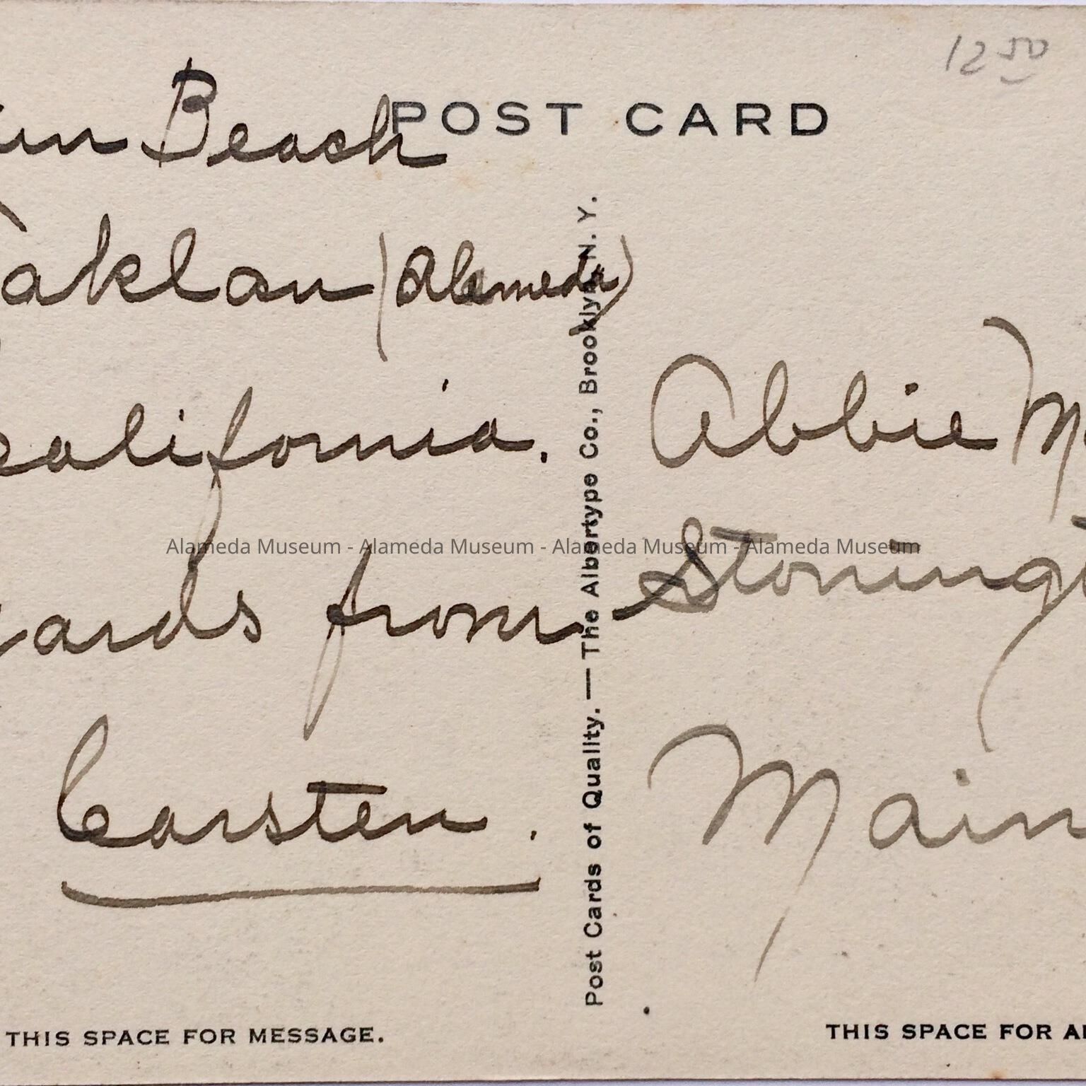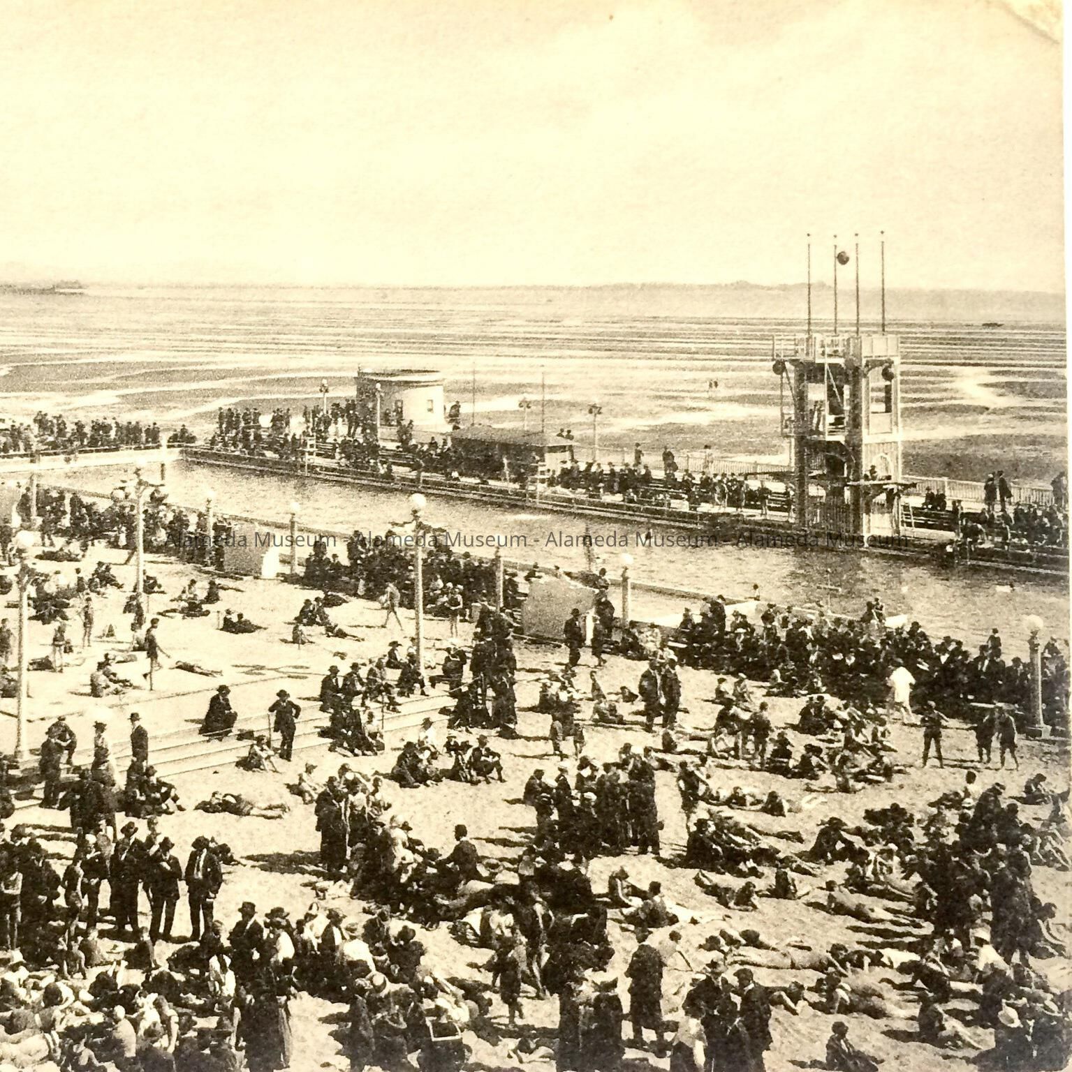 HISTORY OF OBJECT: POSTCARD DEPICTING BEACH SCENE AND ENCLOSED POOL AT NEPTUNE BEACH, ALAMEDA, CA.