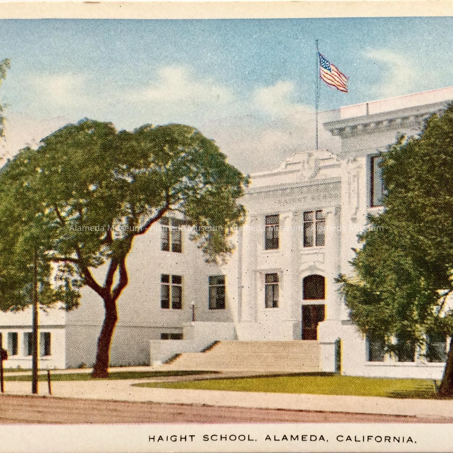 POSTCARD DEPICTING THE MAIN FACADE OF THE SECOND HAIGHT SCHOOL BUILDING ON SANTA CLARA AVENUE NEAR CHESTNUT ST, ALAMEDA (SINCE DEMOLISHED).