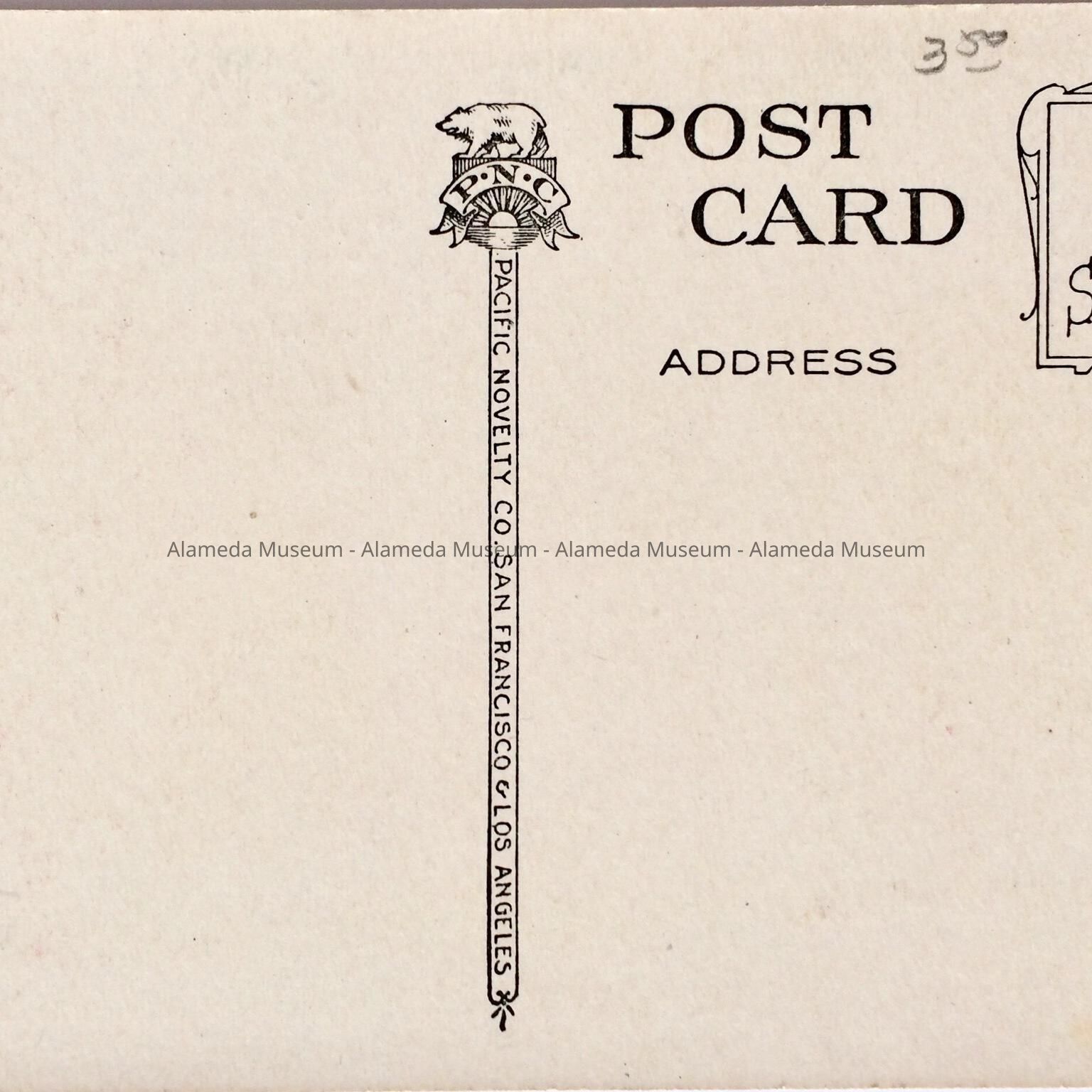 COLORED PHOTOLITHOGRAPHIC POSTCARD, SIGNED "PACIFIC NOVELTY CO., SAN FRANCISCO AND LOS ANGELES, CALIF."