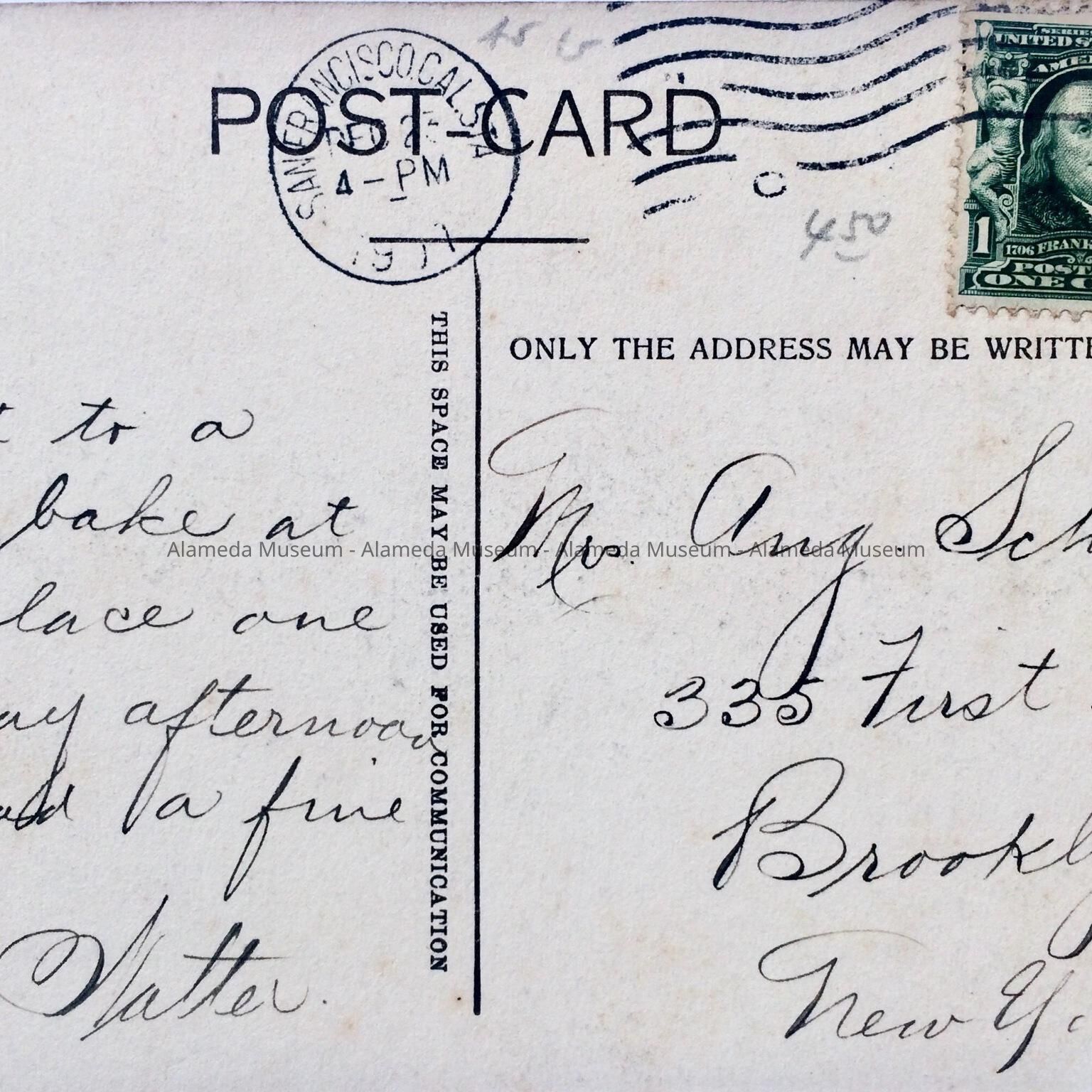 HISTORY OF OBJECT: POSTCARD DEPICTING THE BEACH, SUNNY COVE BATHS, ALAMEDA, CA.