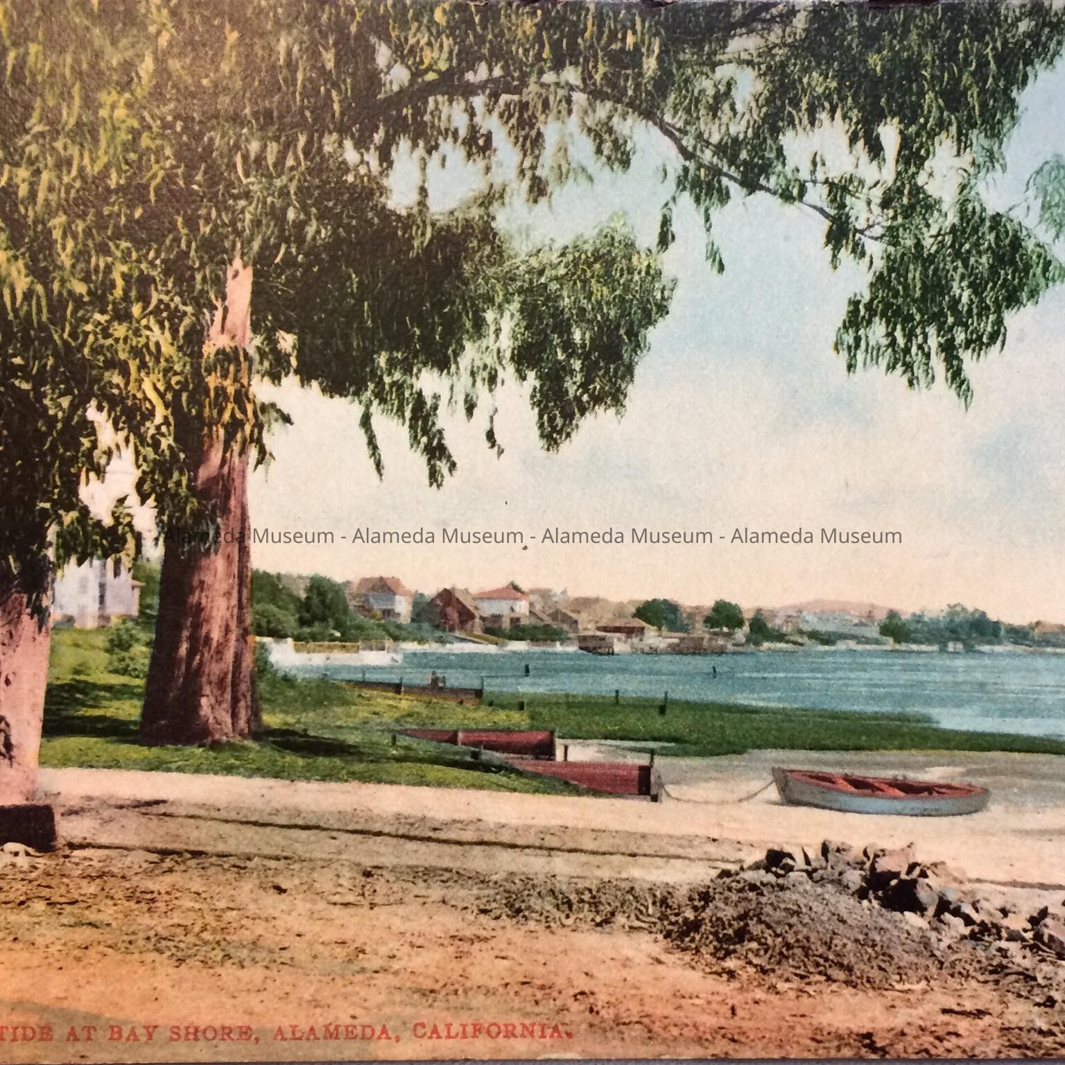 HISTORY OF OBJECT: POST CARD DEPICTING EUCALYPTUS AT THE BAY SHORE, ALAMEDA, CA.