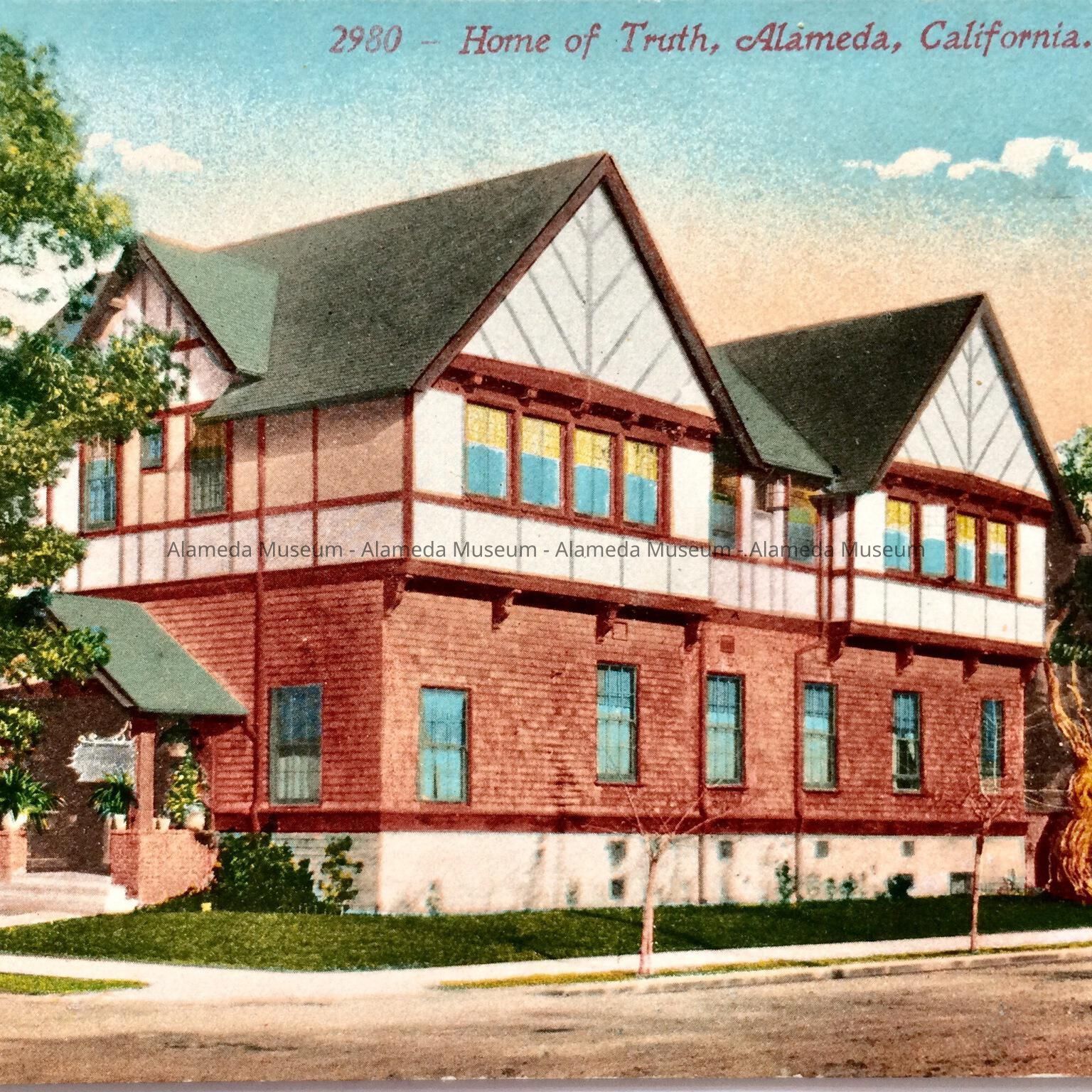 History of Object: The postcard depicts the Home of Truth, Northeast corner Grand Street and Alameda Avenue, Erected in 1905.