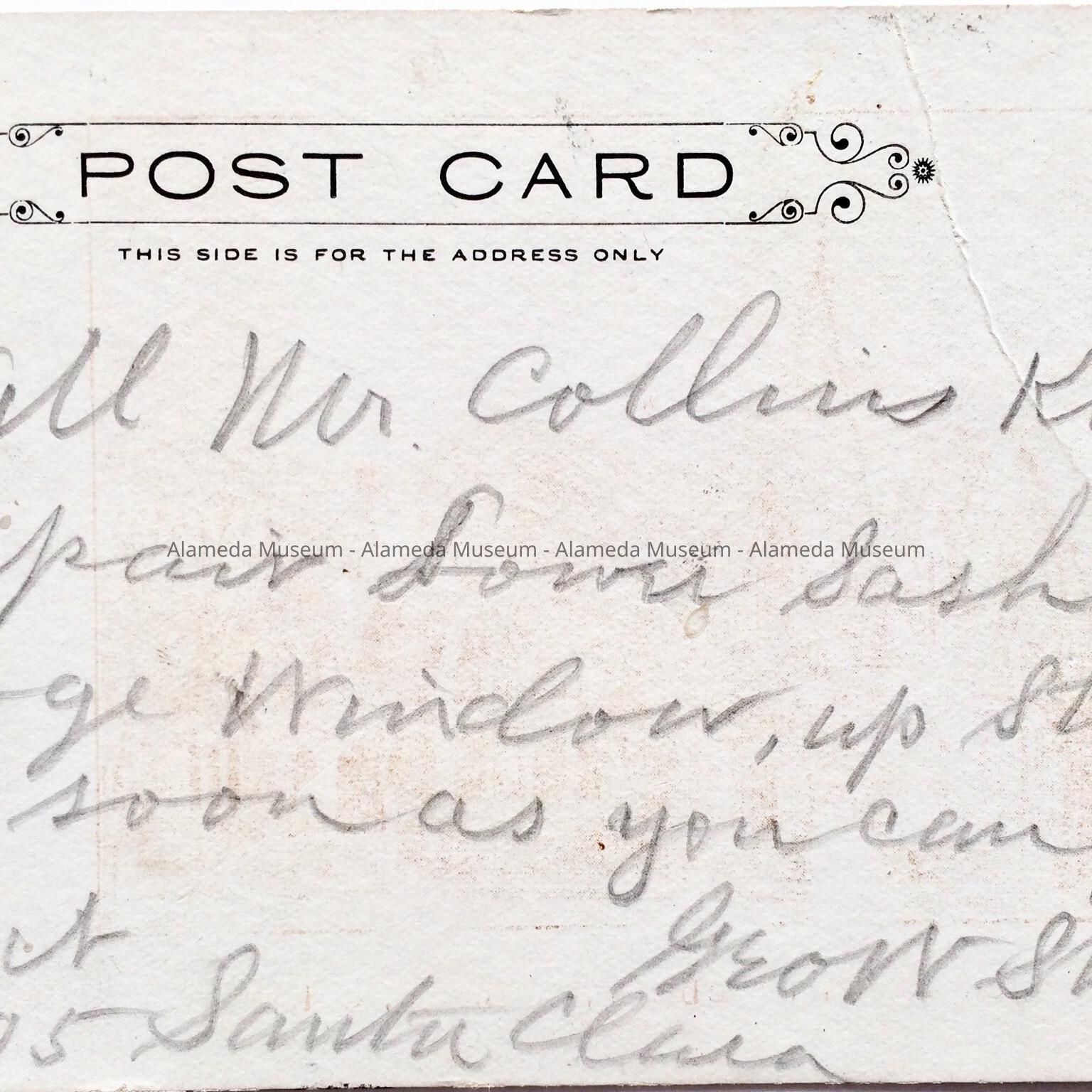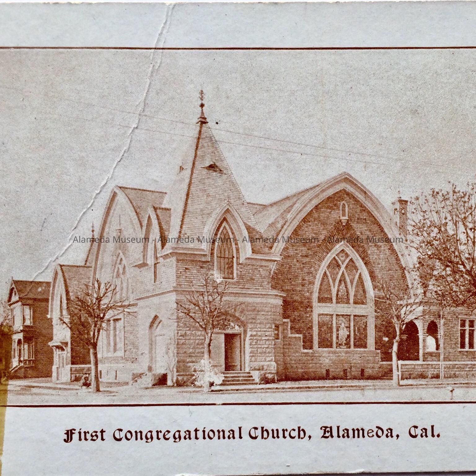 HISTORY OF OBJECT: POSTCARD DEPICTING THE MAIN FACADE, FIRST CONGREGATIONAL CHURCH, SOUTHWEST CORNER, CHESTNUT STREET AND CENTRAL AVENUE, ALAMEDA.