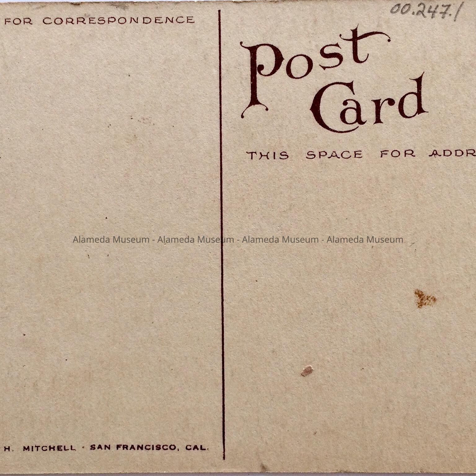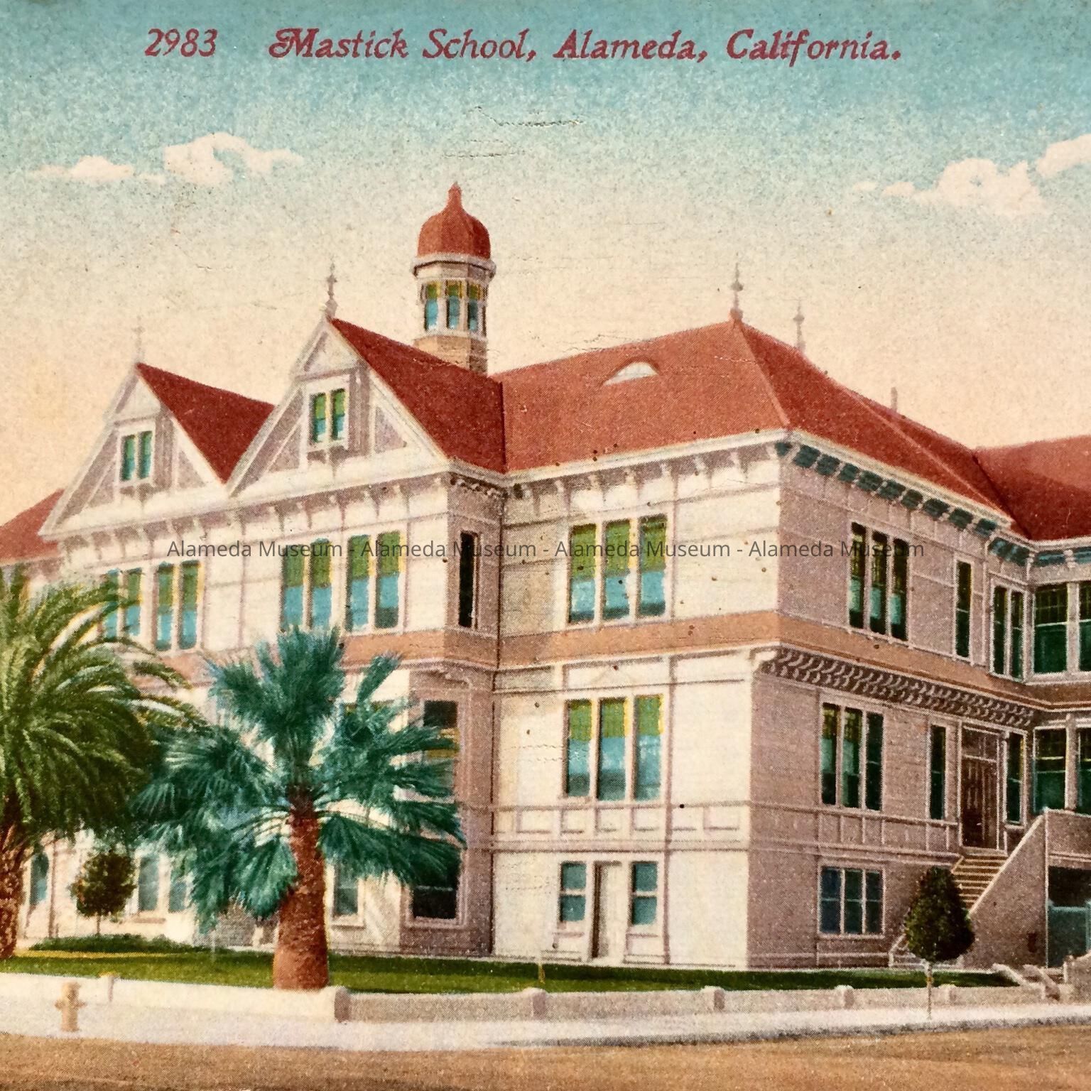 A COLORED PHOTOLITHOGRAPHIC POST CARD, WITH CAPTION, "MASTICK SCHOOL, ALAMEDA, CAL." EDWARD H MITCHELL, PUBLISHER, SAN FRANCISCO. UNCIRCULATED.