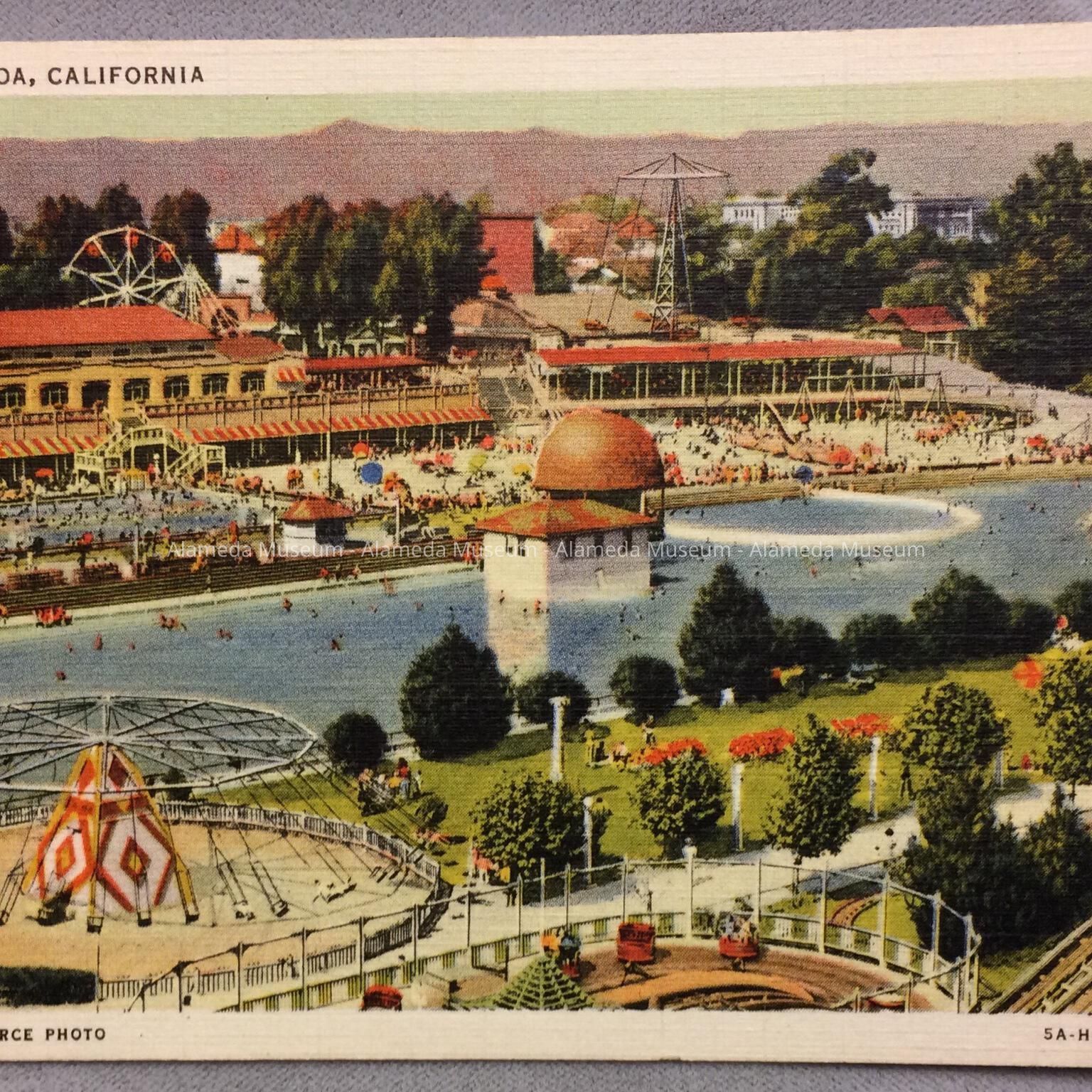 Uncirculated postcard titled 'Neptune Beach, Alameda, California', and cited source: Alameda Chamber of Commerce Photo.