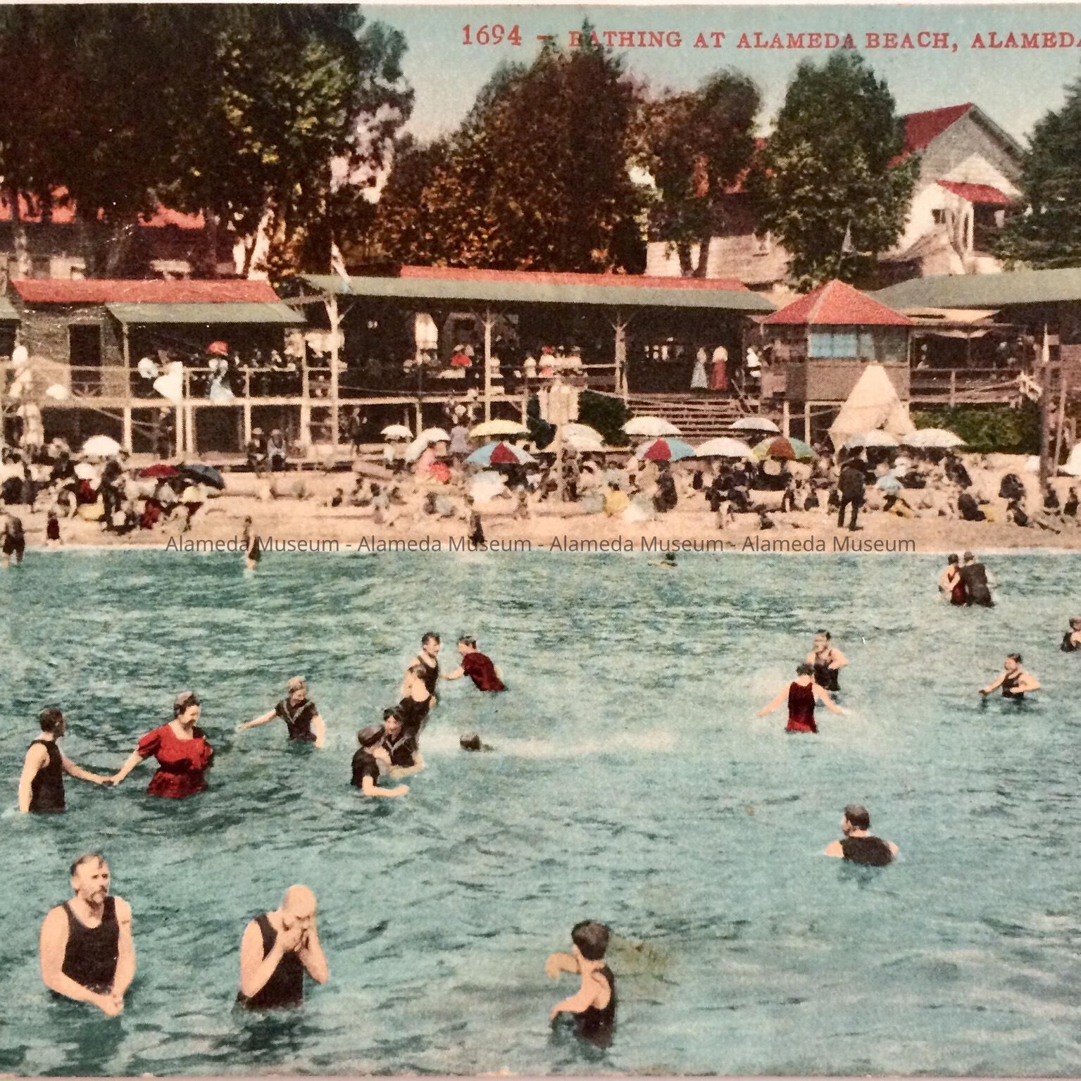 Postcard of bathing at Alameda Beach, 1940Entry/Object ID