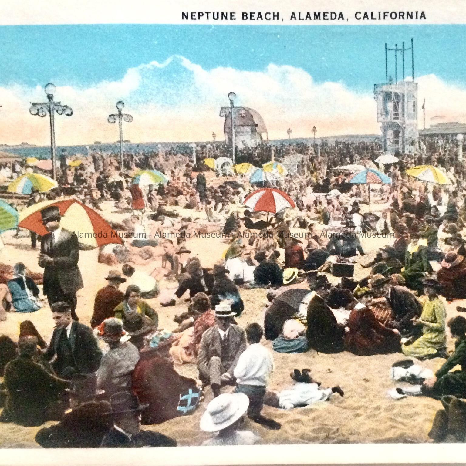 POSTCARD DEPICTING CROWDS AT NEPTUNE BEACH, ALAMEDA. 1917-1939.