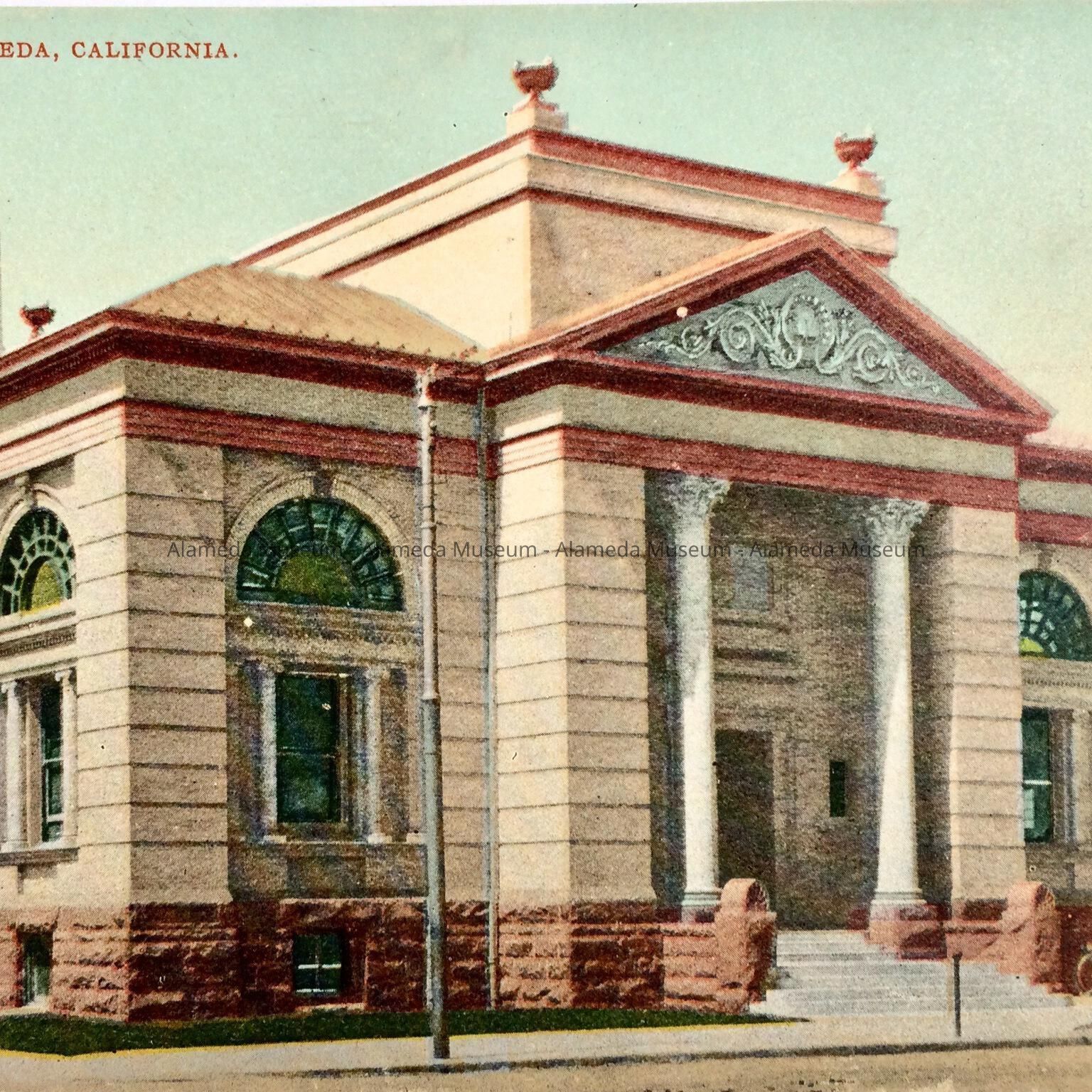 Postcard of main facade of Alameda Free Library, c. early 1900sEntry/Object ID