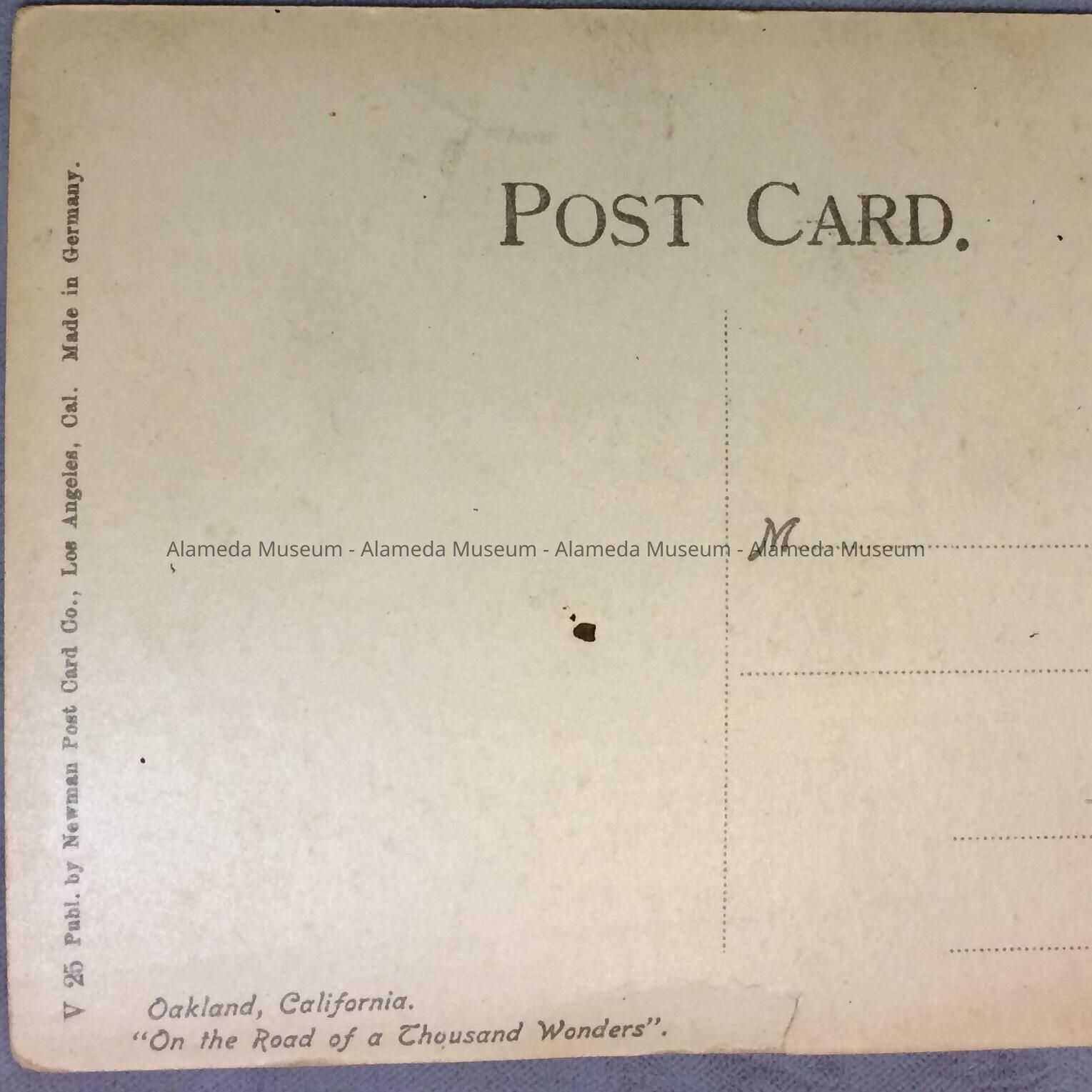 PHOTOLITHOGRAPHIC POST CARD IN COLOR. PUBLISHED BY NEWMAN POST CARD COMPANY, LOS ANGELES, CA. THE POST CARD IS UNCIRCULATED.