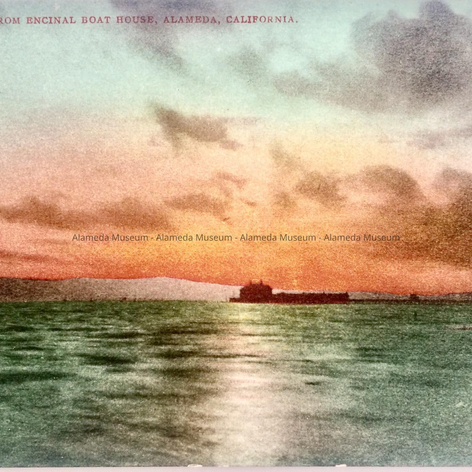 postcard of sunset from the Encinal Boat House, early 1900sEntry/Object ID