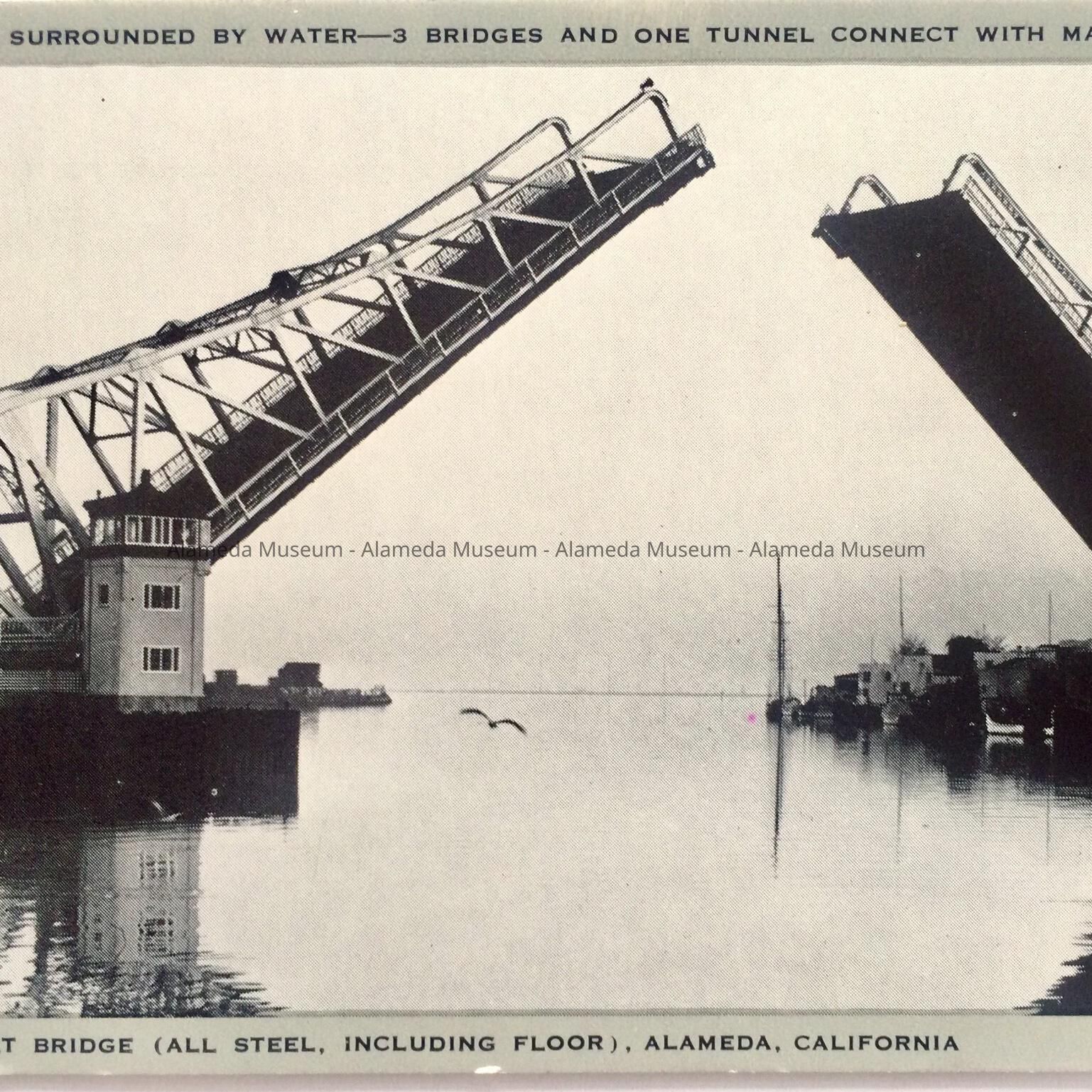 Postcard depicting the High Street Bridge open for marine navigation.