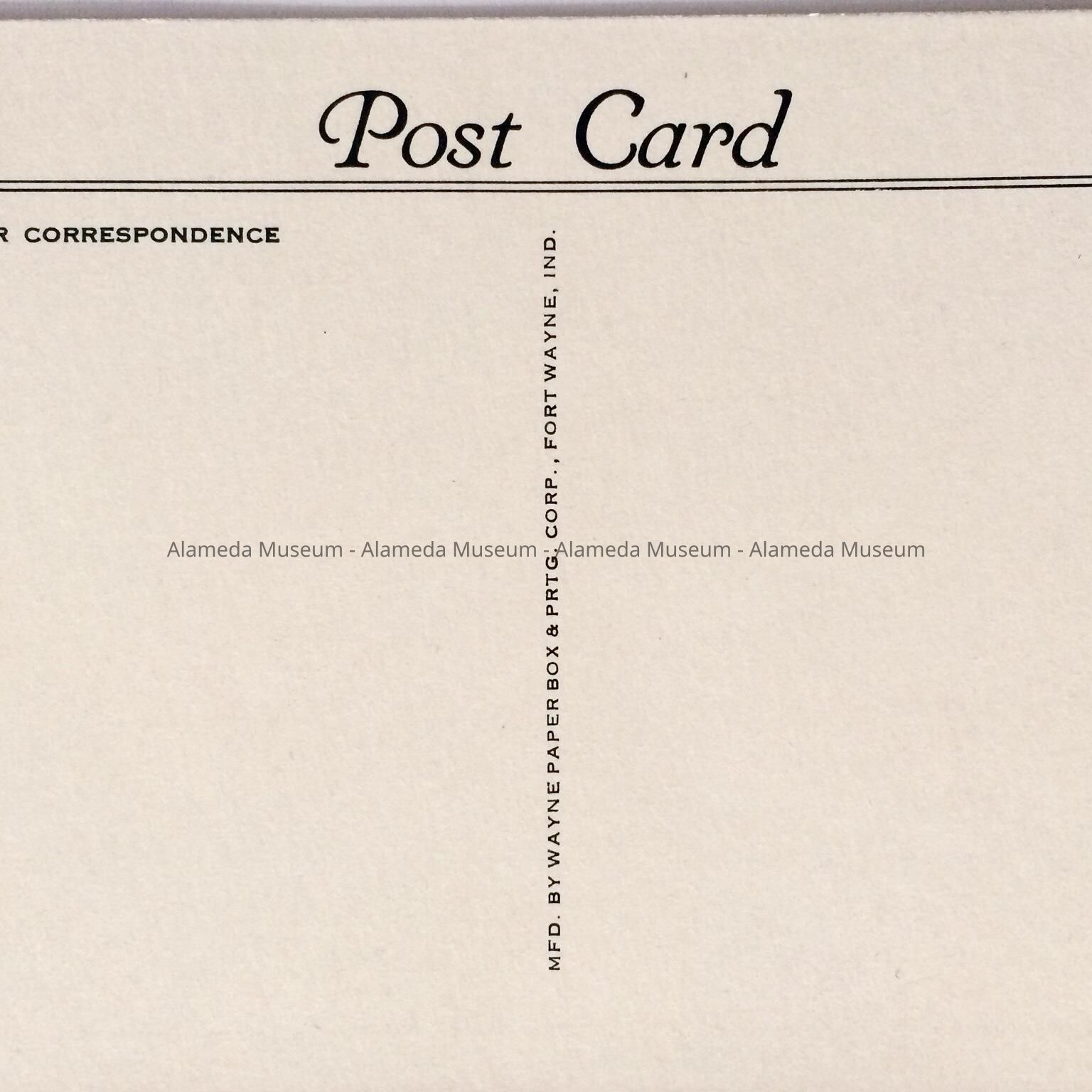Description: Black and white photolithographic postcard, uncirculated, signed Wayne Paper Box & Printing Corp.