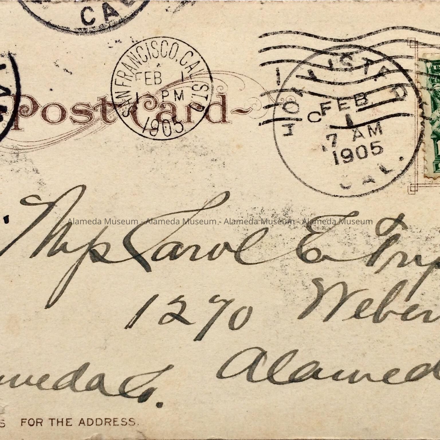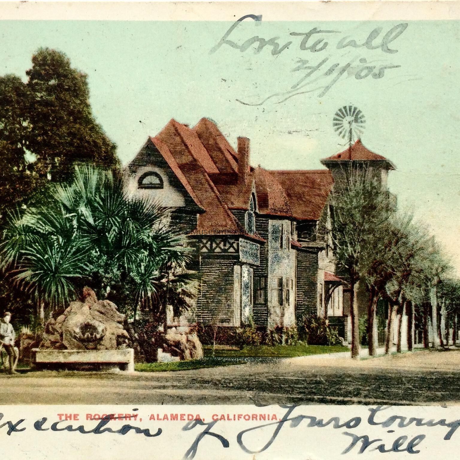 Description: Tinted photographic postcard published by Edward H. Mitchell, S.F. Card heading "The Rockery, Alameda, California." Size: L-3 1/2 x W-5 1/2 inches.