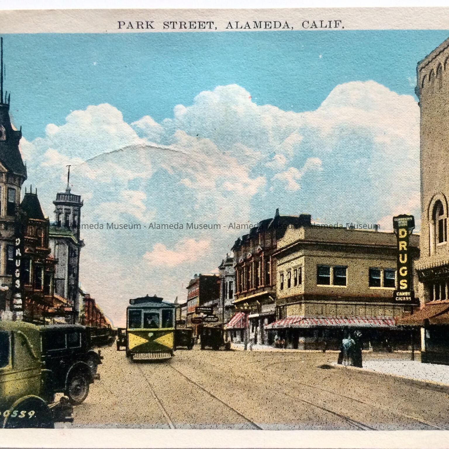 Postcard Trolley car at Park Street and Central Avenue, Ca. 1930Entry/Object ID