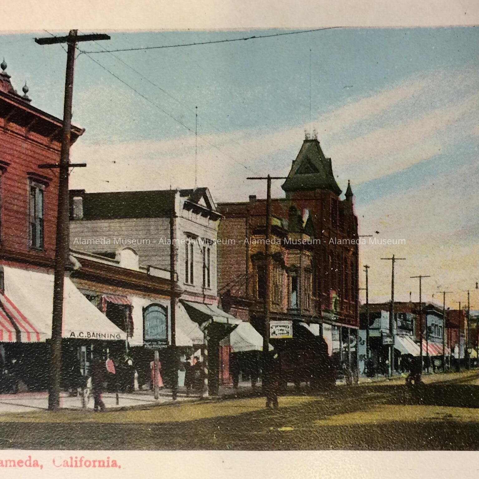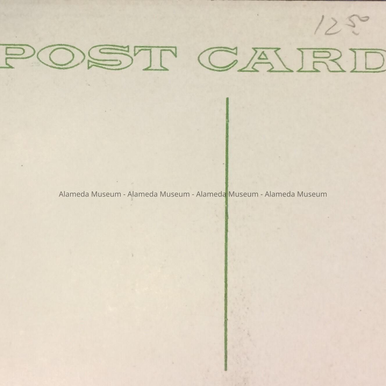 Color photolithographic postcard with caption, “Park Street, Alameda Cal.”. Card uncirculated and signed by Richard Behrendt, Publisher, San Francisco.