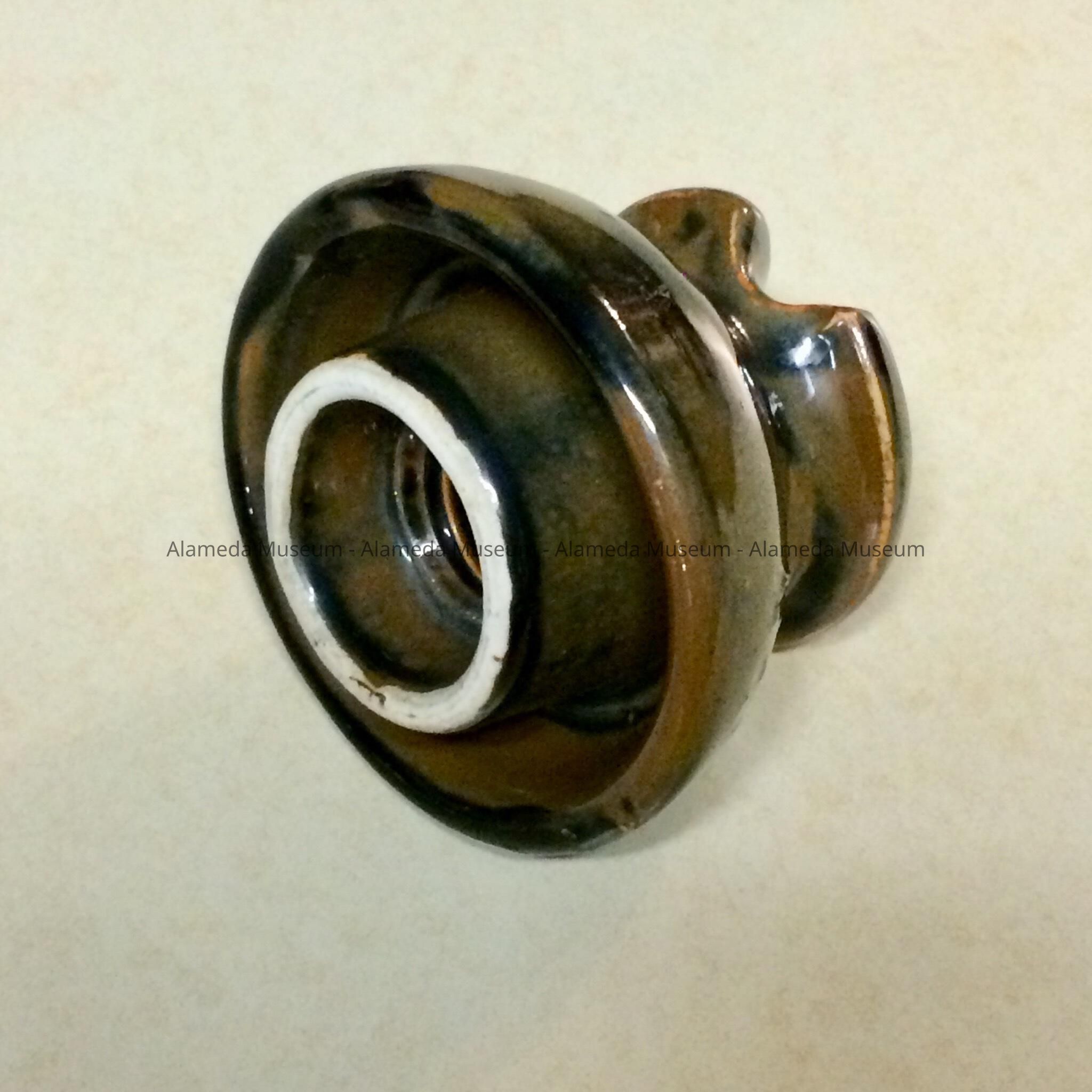 History of Object: An insulator used by the Alameda Bureau of Electricity. It was acquired from Delbert Lloyd, a lineman for the Bureau of Electricity for some 37 years; he resided at 1225 Walnut Street.