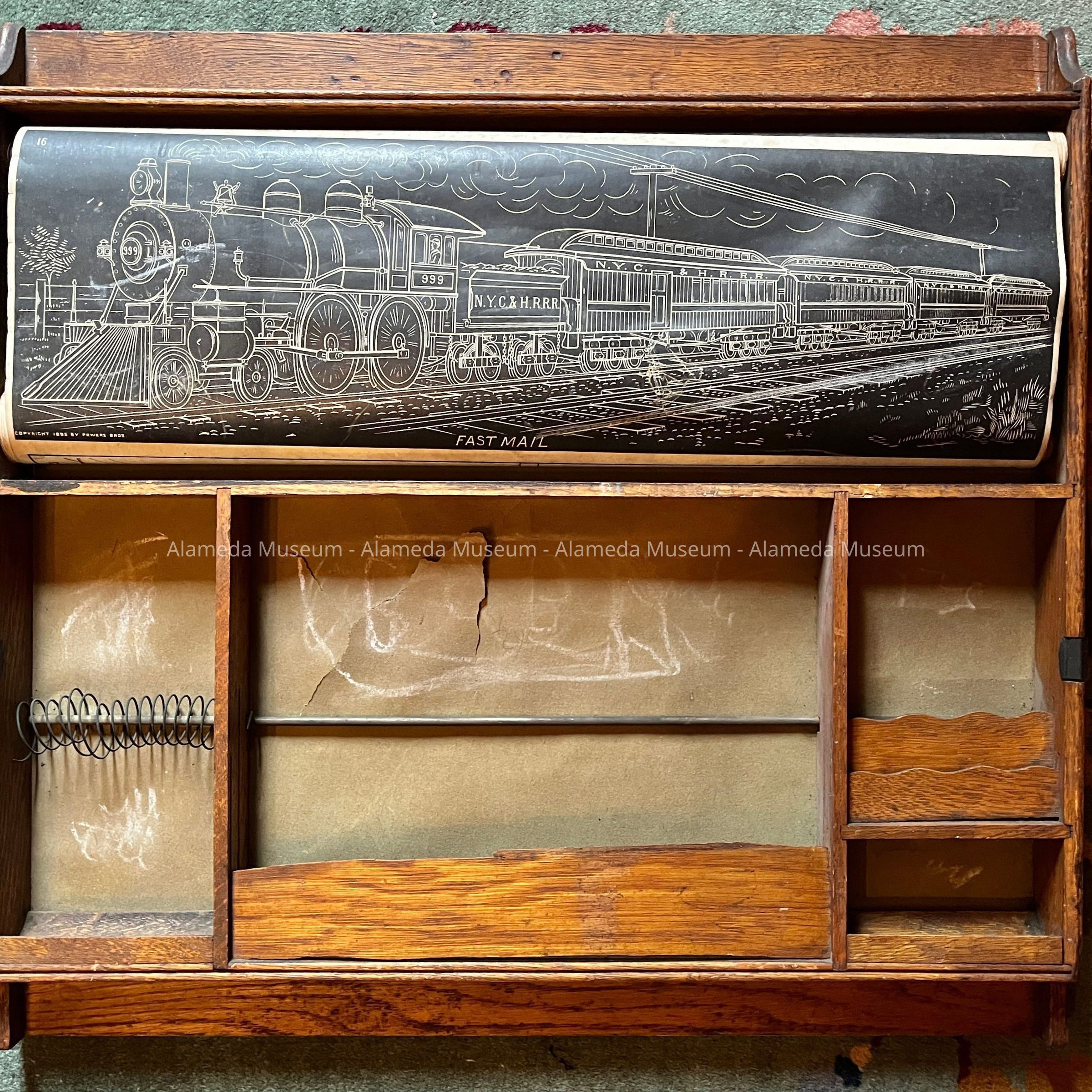 The Chautauqua combination drawing board & writing desk, manufactured by Powers, Higley & Co., Chicago, & copyright 1898. It was found at 3015 San Jose Avenue, Alameda.