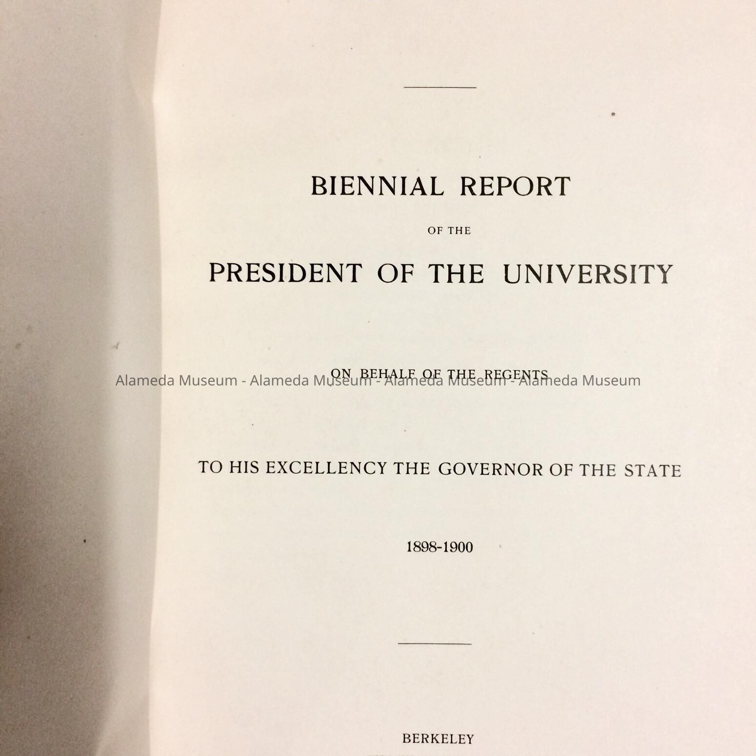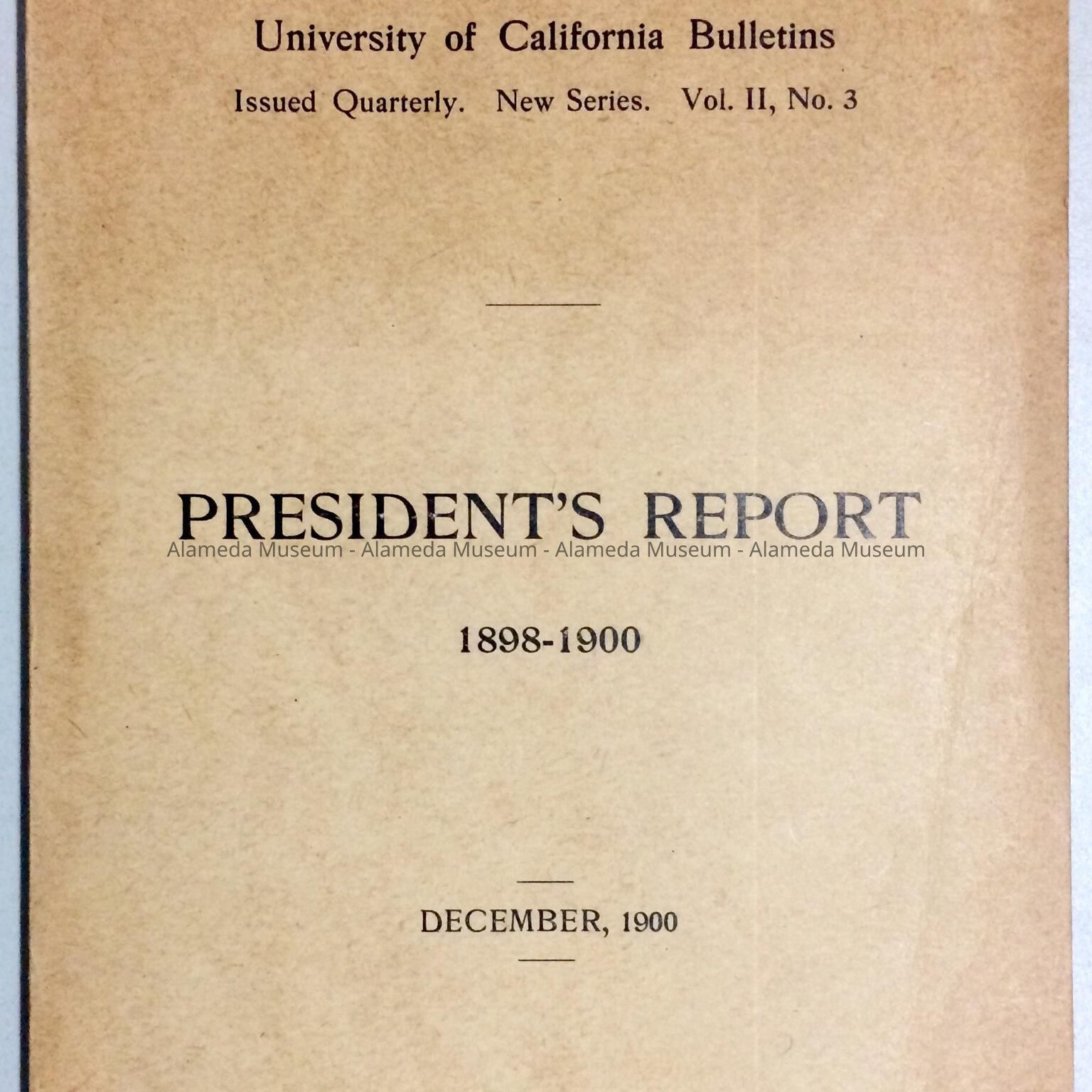 PRESIDENT'S REPORT FOR THE UNIVERSITY OF CALIFORNIA FROM 1898 TO 1900.
