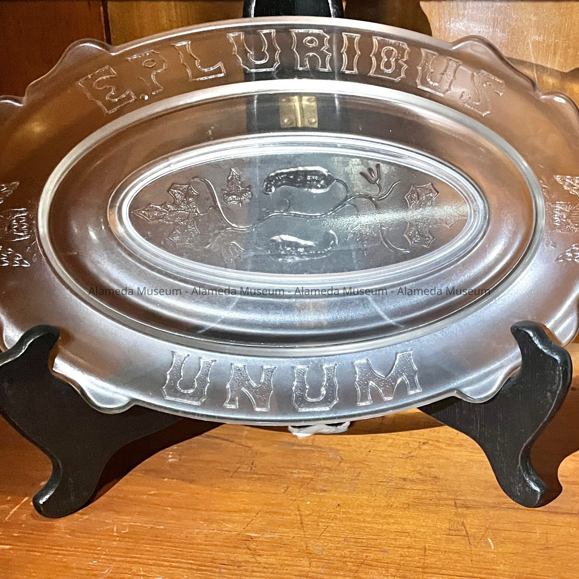 American pressed glass pickle dish issued during the Centennial Exposition of 1876. The dish originally belonged to the H. H. Meyers family (2021 Alameda Avenue), old-time residents of Alameda.