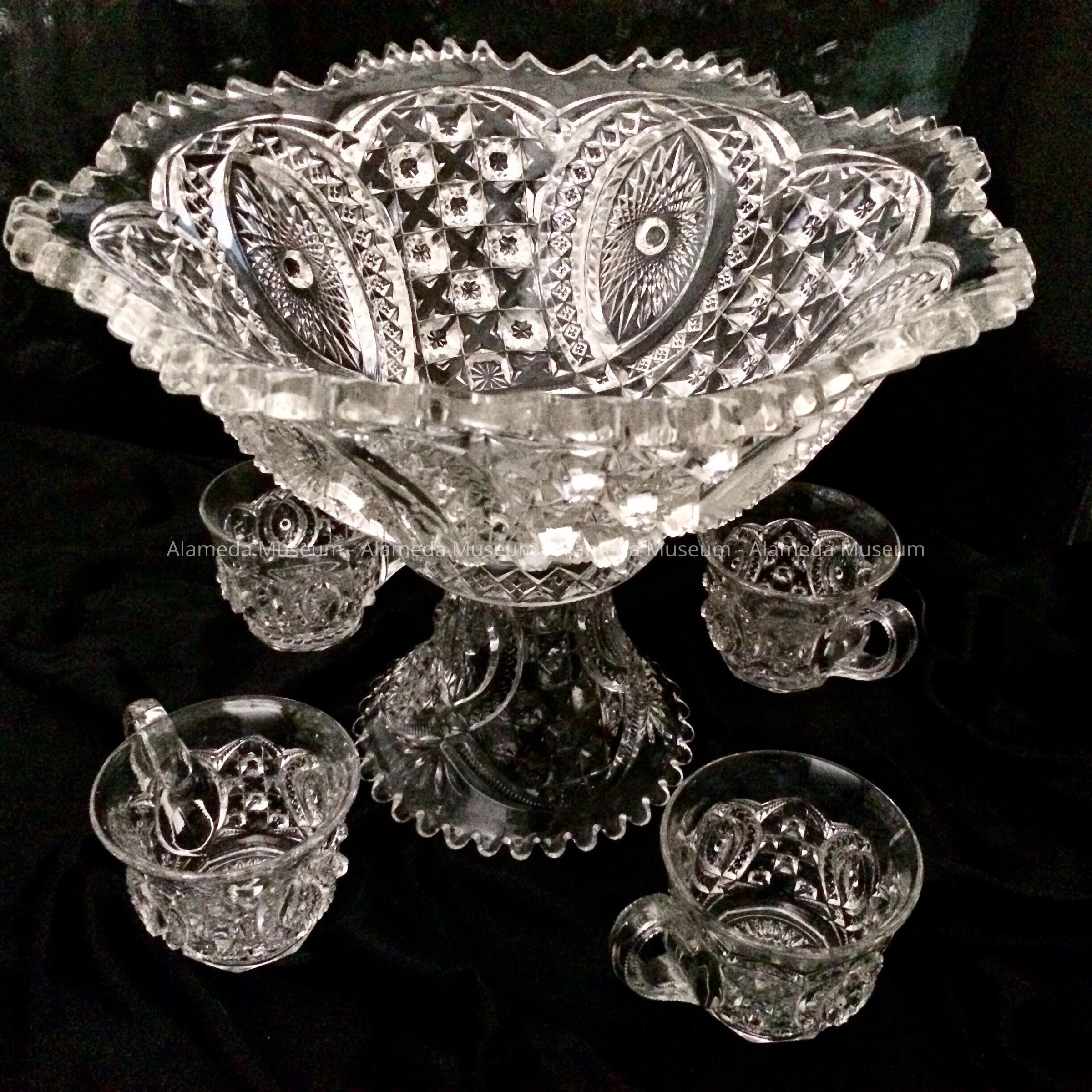 Pressed-glass punch bowl with cups by Northwood, early 1900sEntry/Object ID