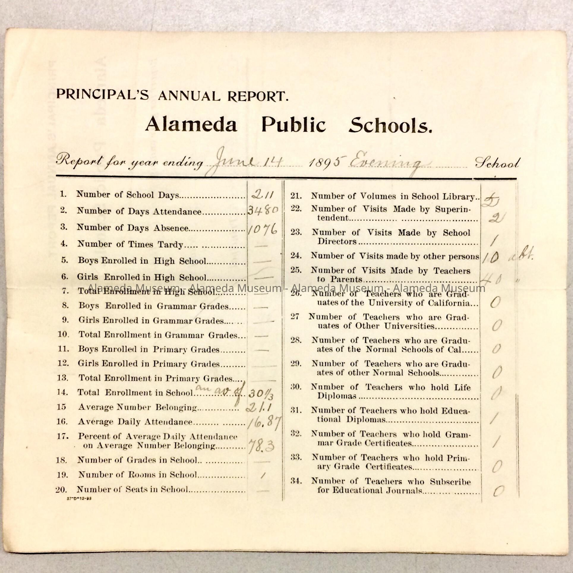 Principal's Annual Report, Alameda Public Schools, 1895Entry/Object ID