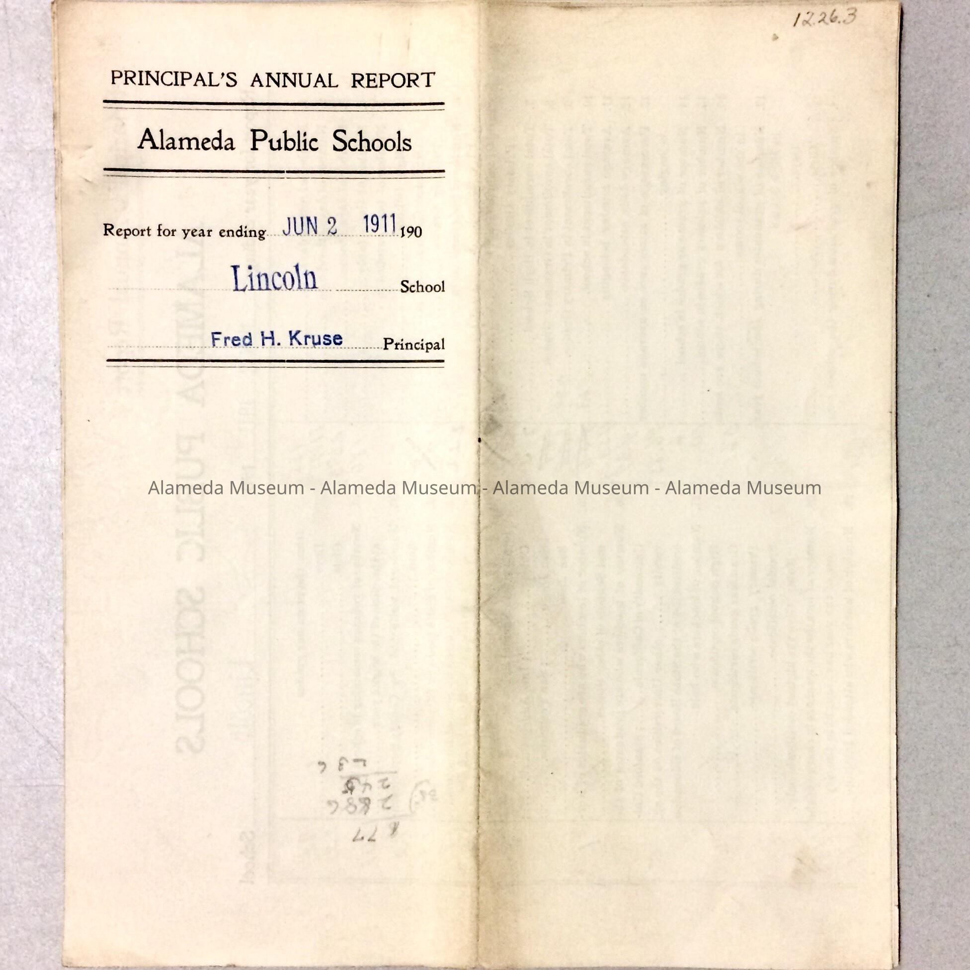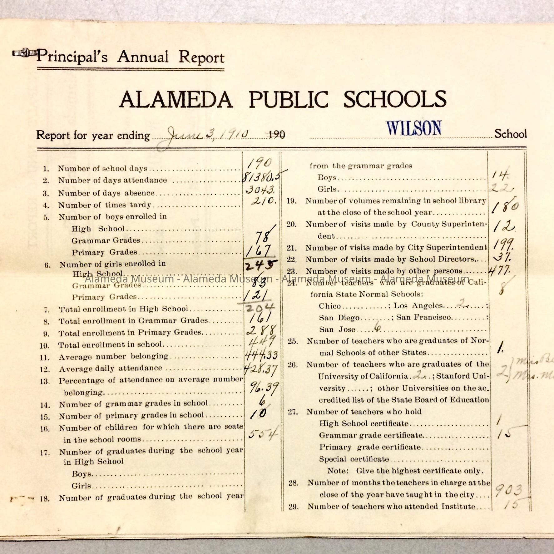 Principal's Annual Report, Alameda Public Schools, 1910Entry/Object ID