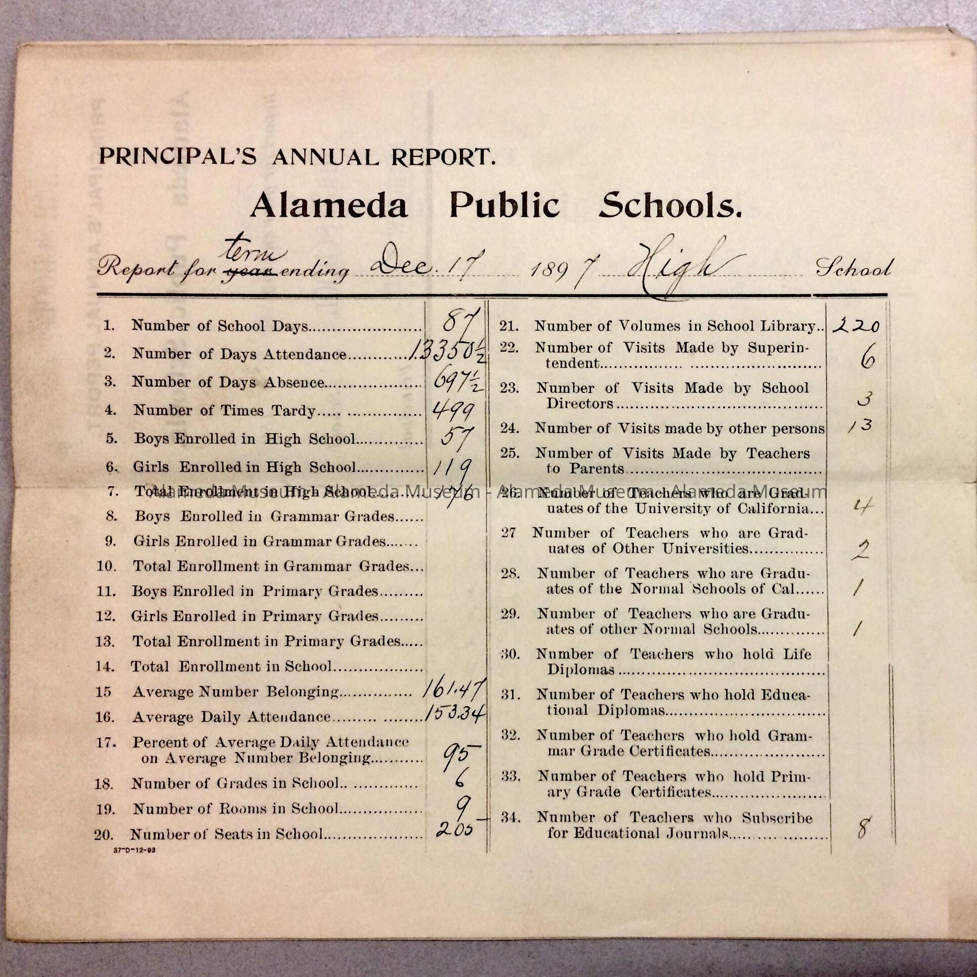 Principal's Annual Report, Alameda Public Schools, Dec 1897Entry/Object ID