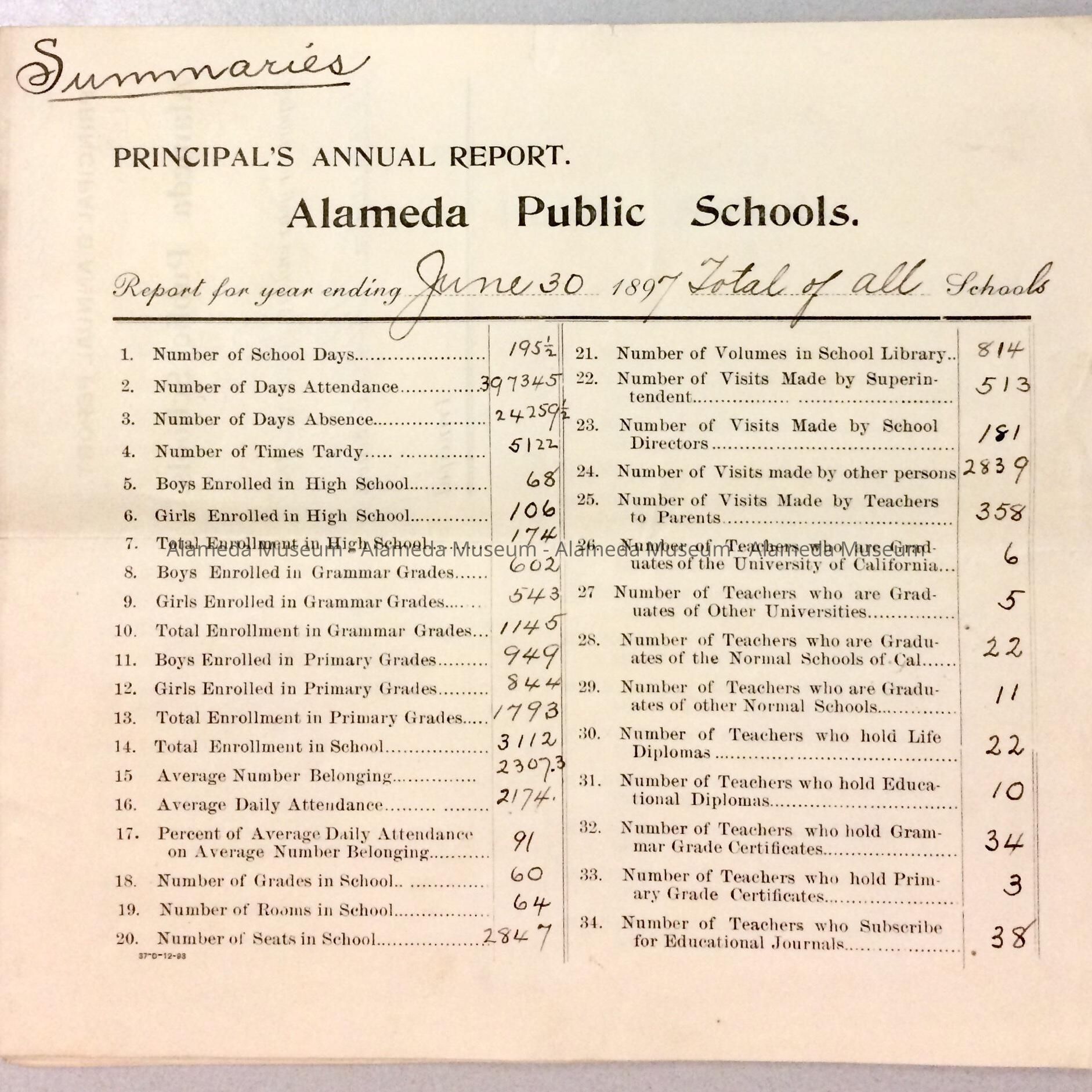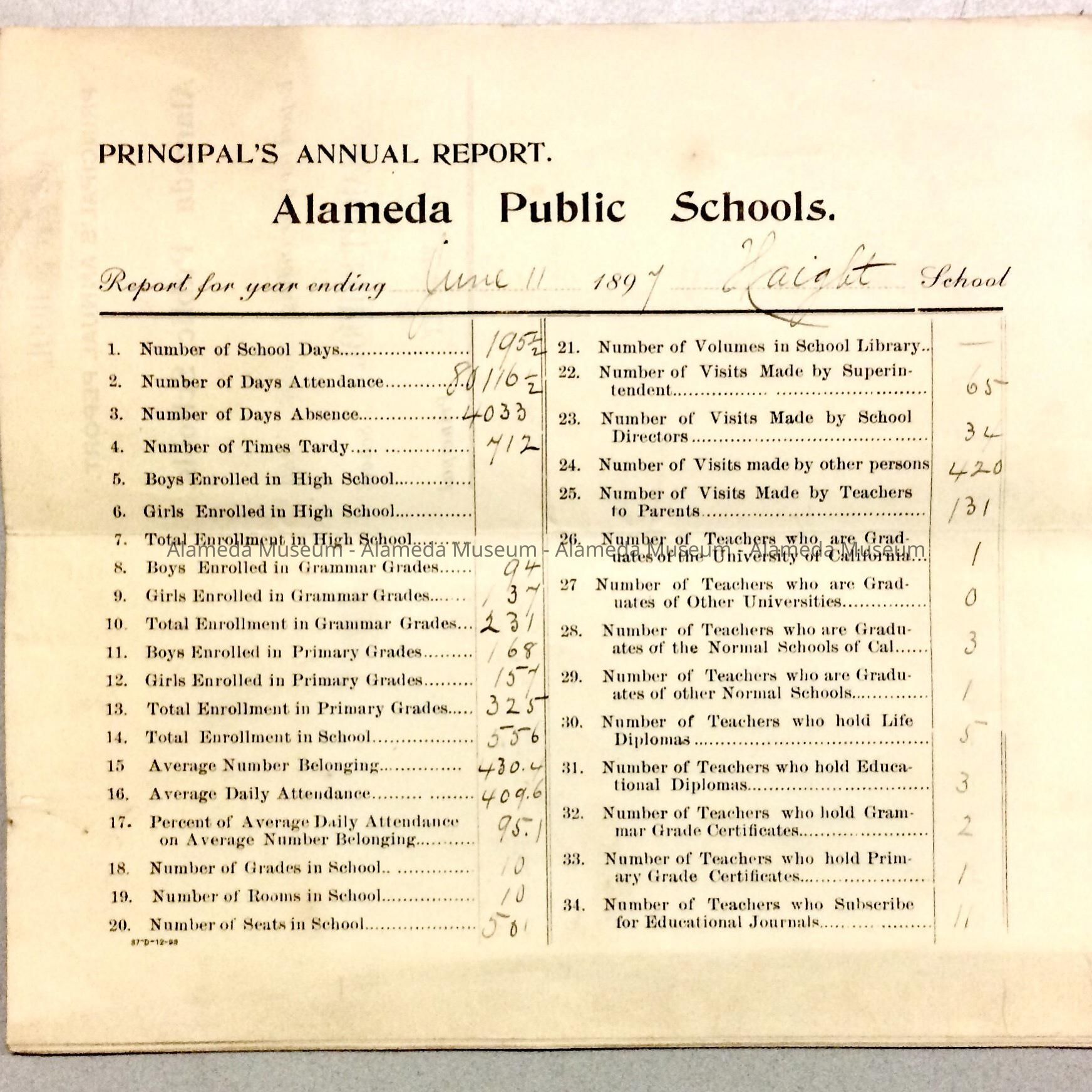 Principal's Annual Report, Alameda Public Schools, June 1897Entry/Object ID