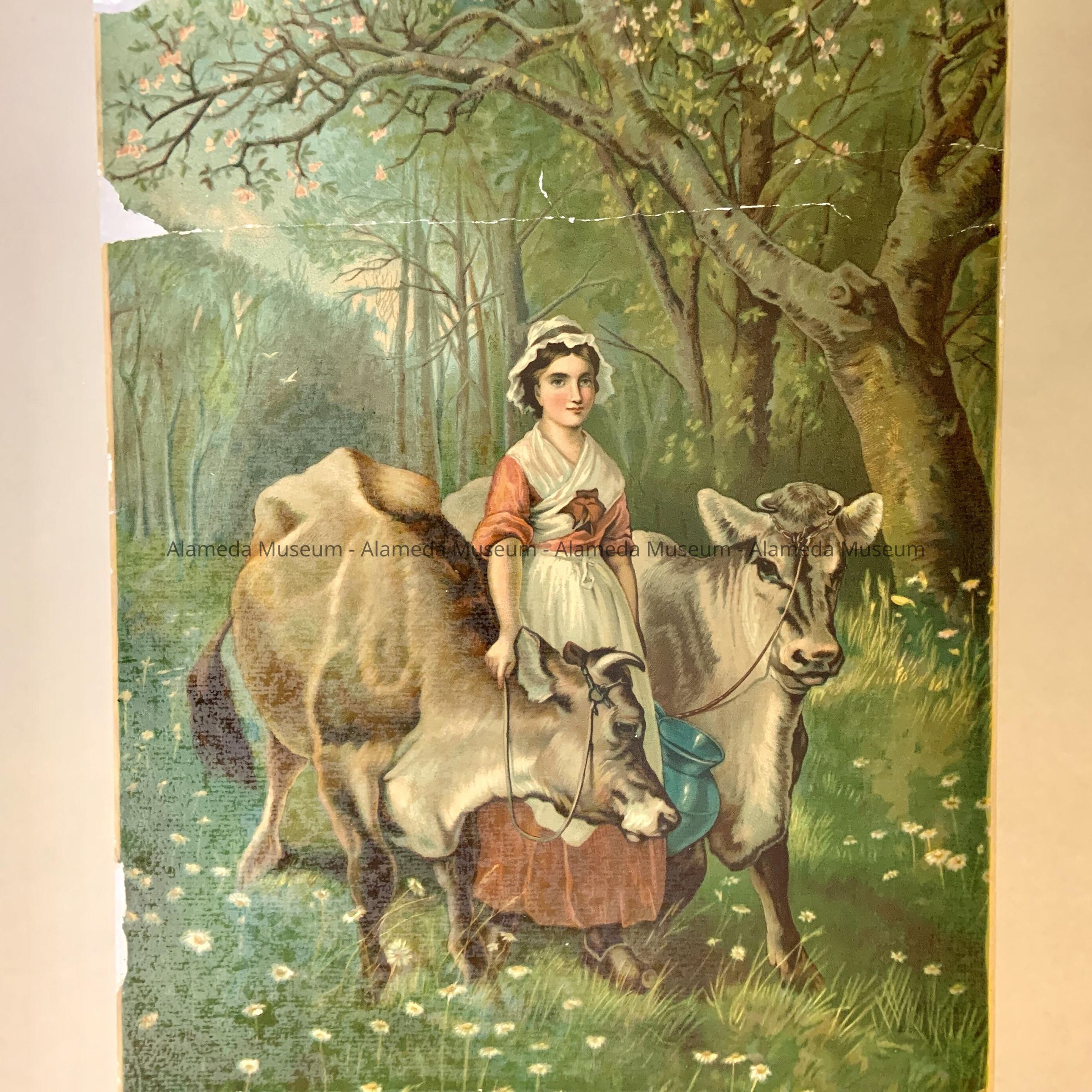 Print of a dairy maid and two cows, from 1523 Mozart Street, c. 1880sEntry/Object ID