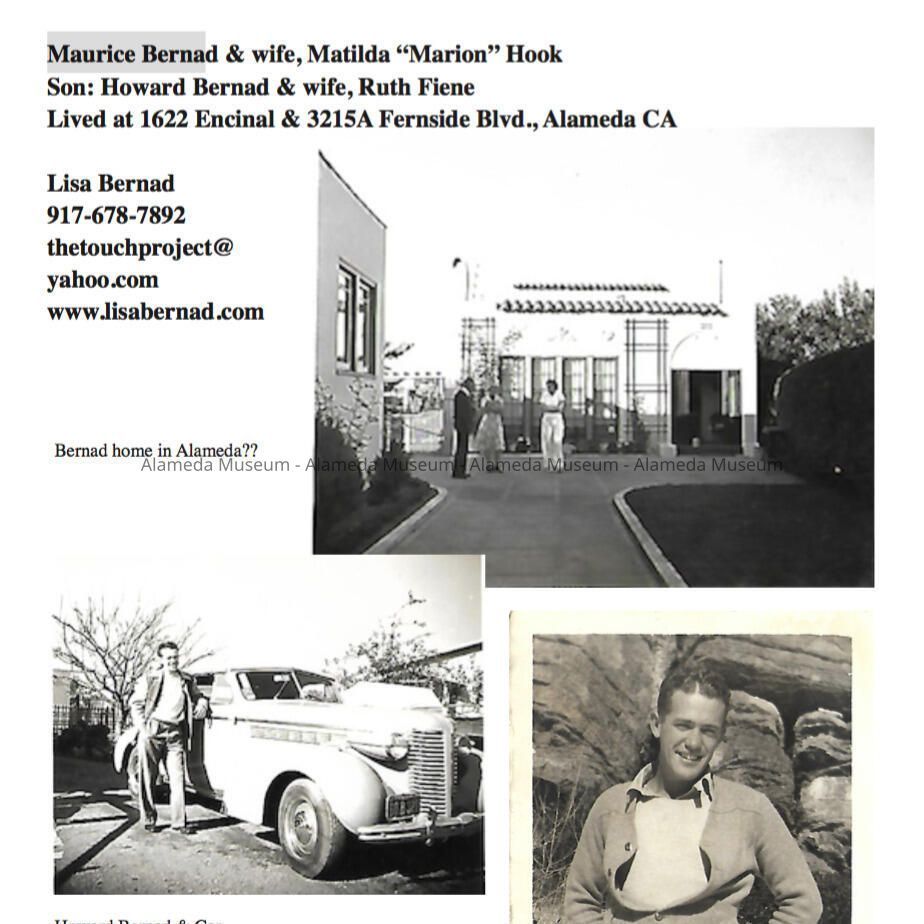 Howard Bernad moved to Alameda as a boy, he graduated from Haight Elementary and Alameda High, and worked as an engineer. He and his wife Ruth Fiene lived at 1622 Encinal & 3215A Fernside Blvd.