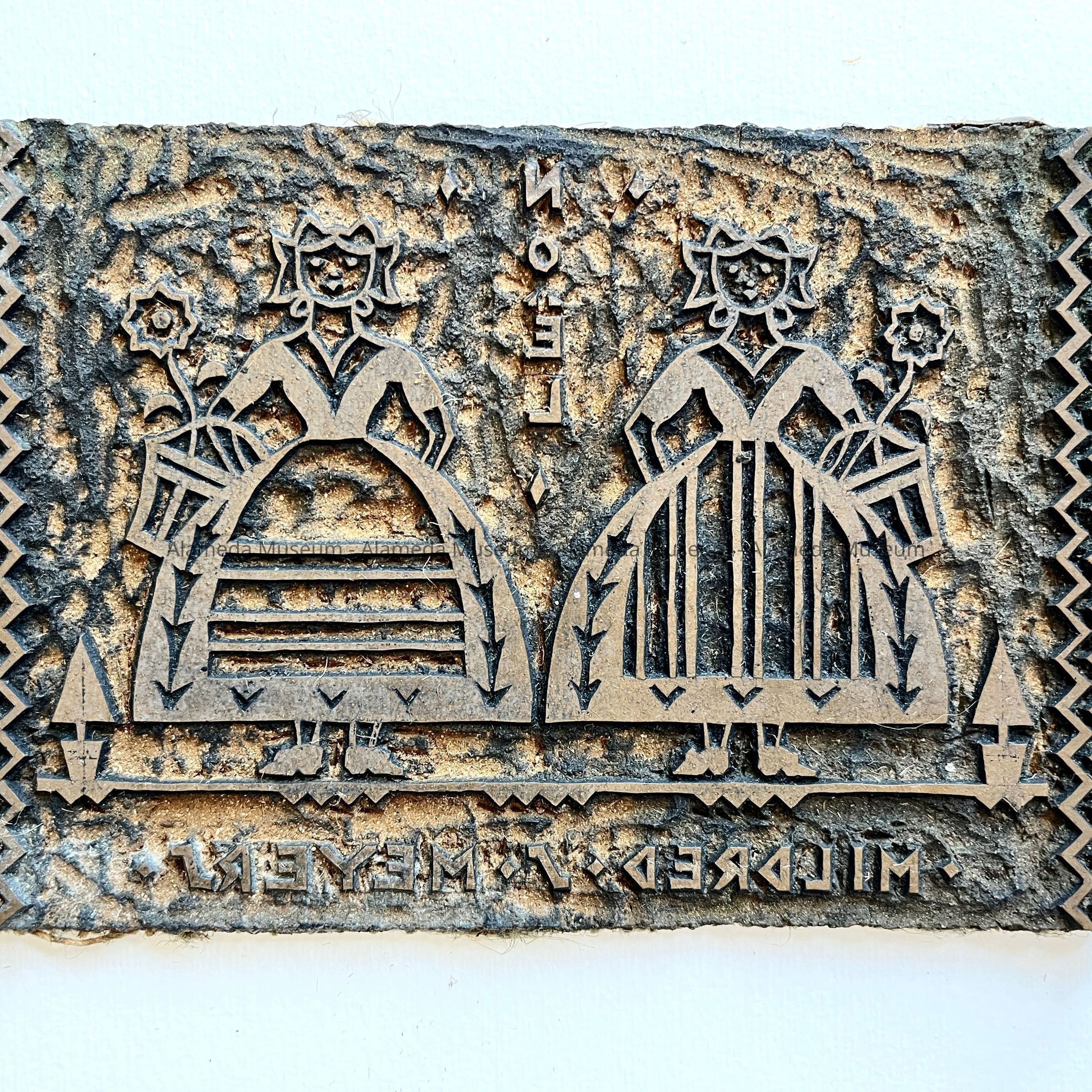 Printing block for 'Dutch Girls' Christmas Cards by Mildred Meyers, c. 1930sEntry/Object ID