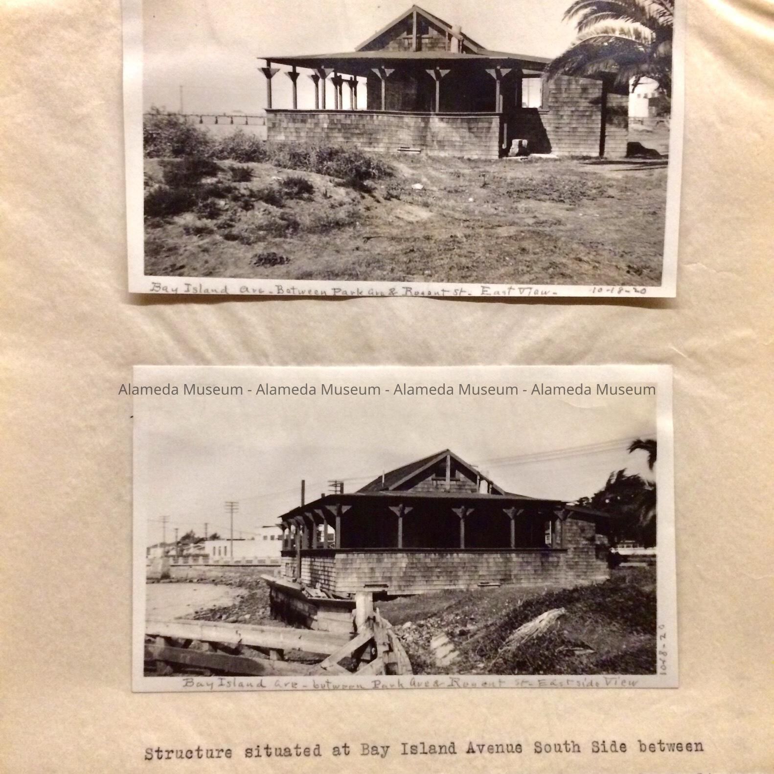 - 2 side views of a house on the shore, at Bay Island Ave between Park Ave and Regent St.