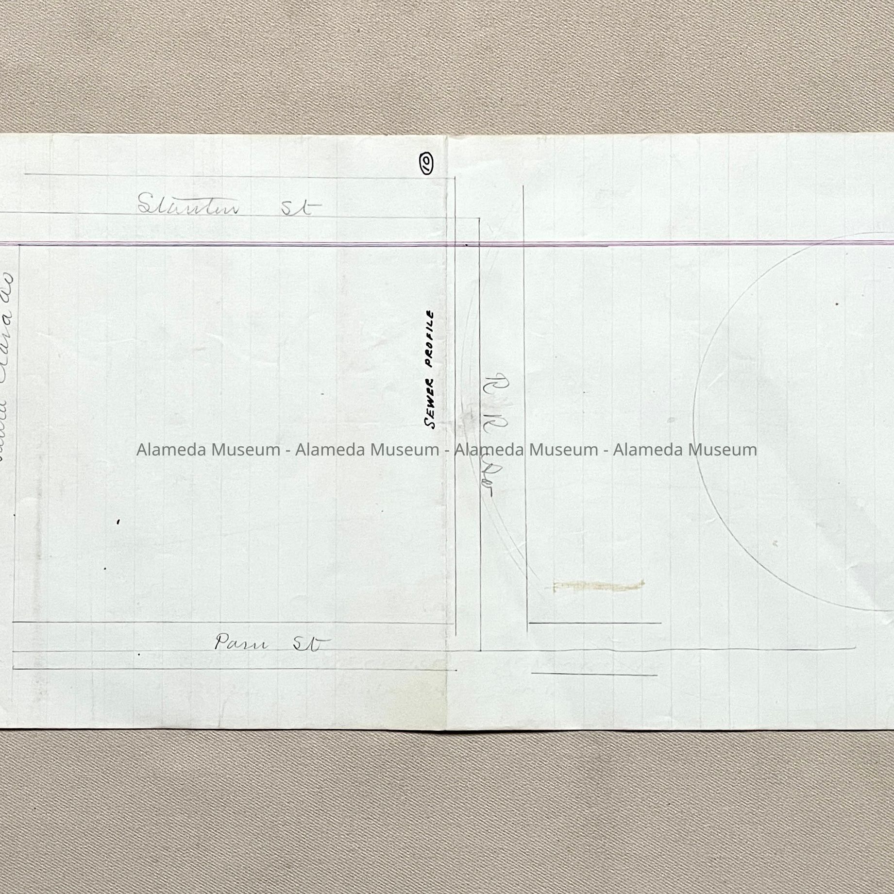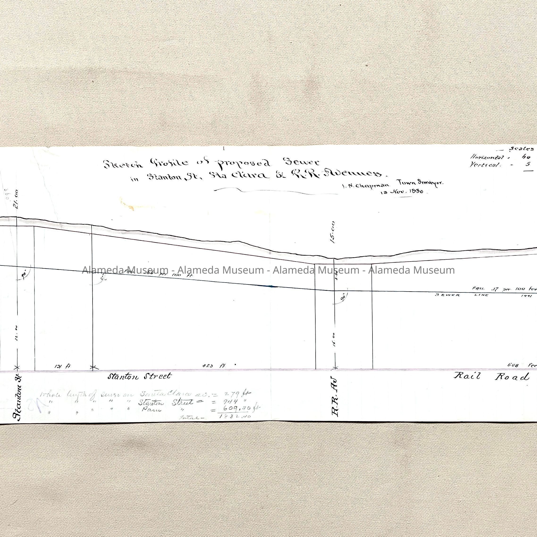 HISTORY OF OBJECT: SKETCH PROFILE OF A PROPOSED SEWER ON STANTON STREET BETWEEN SANTA CLARA AVENUE AND RAILROAD AVENUE. THE SKETCHED WAS SIGNED BY I N CHAPMAN, TOWN SURVEYOR, AND DATED NOVEMBER 13, 1880.