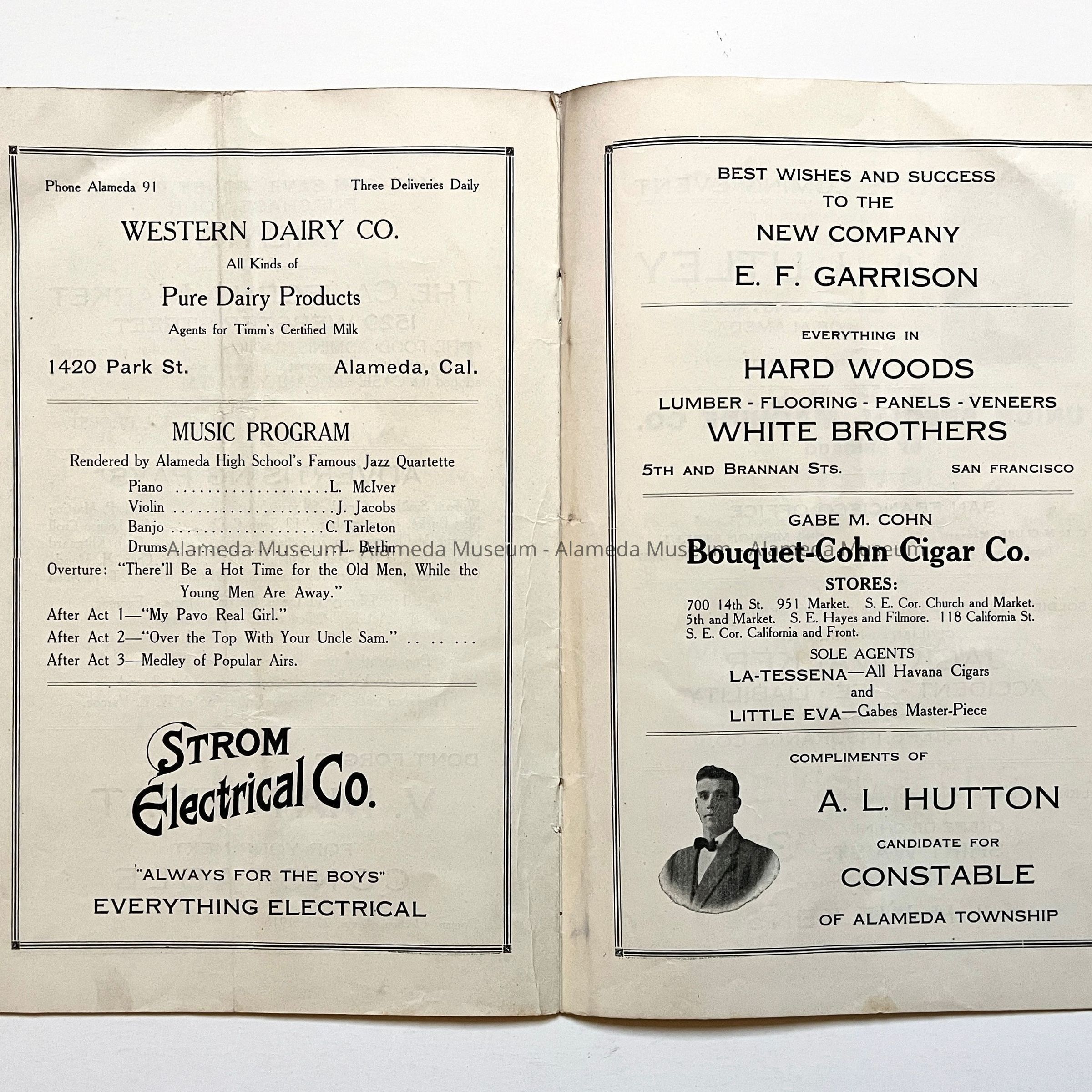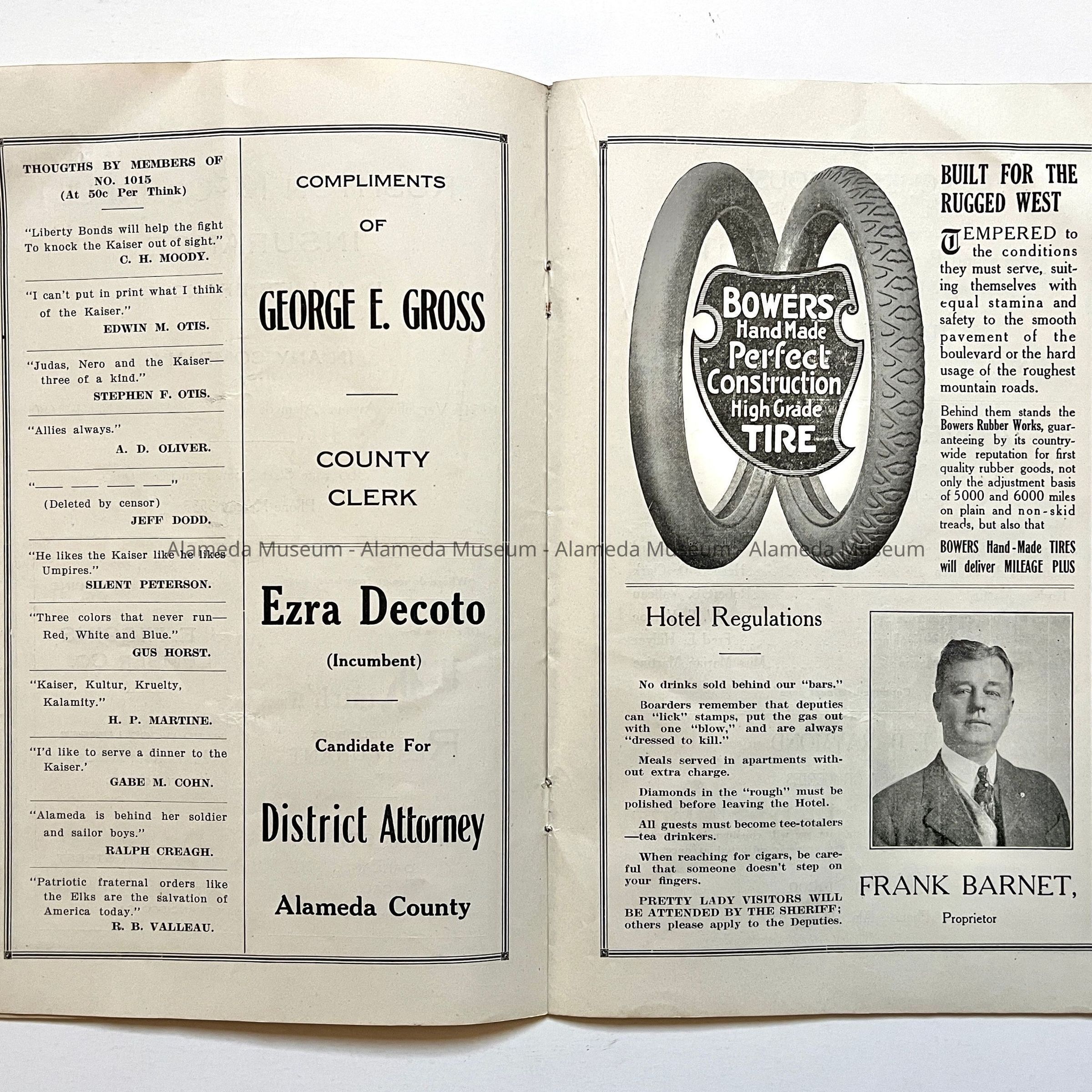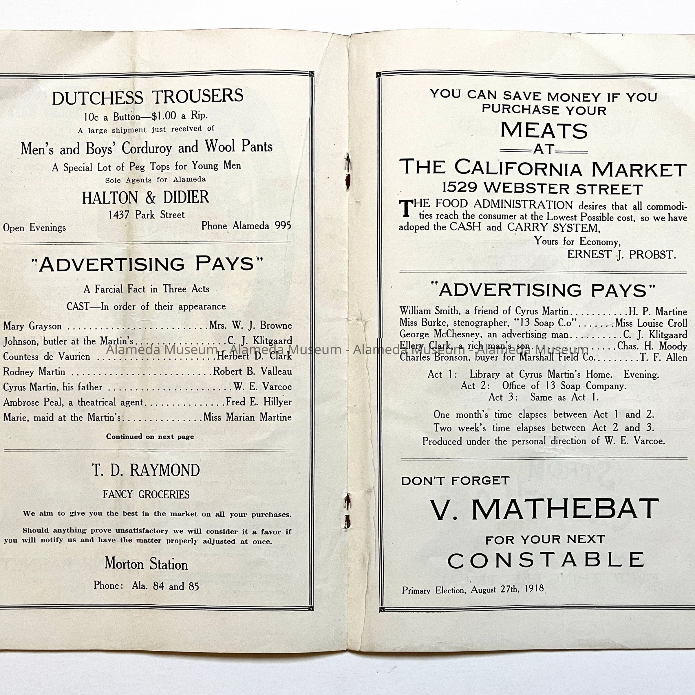 Program, Alameda Elks Lodge theatre program, 'Advertising Pays', 1918Entry/Object ID