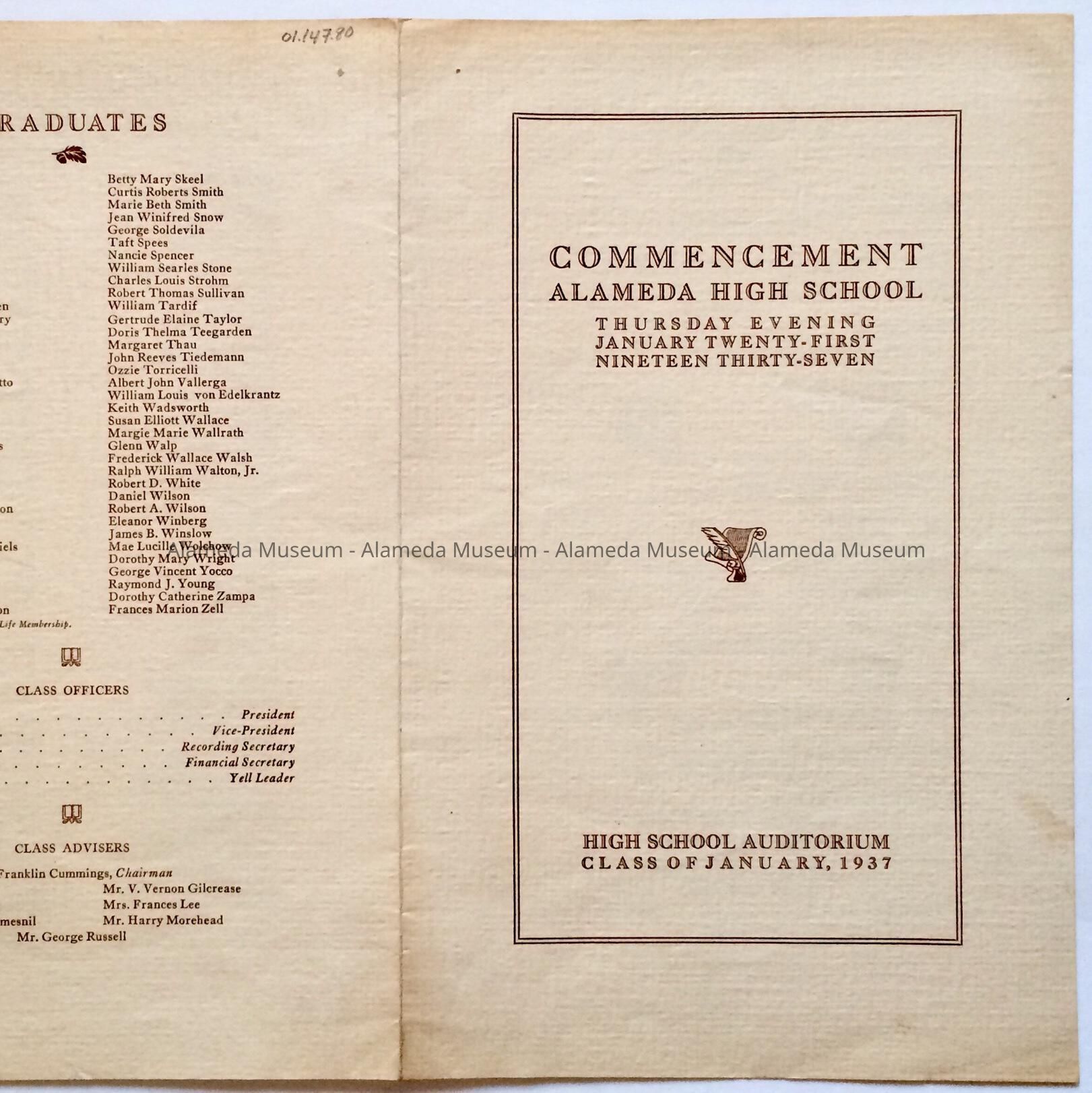 Program Alameda High School Commencement January 1937Entry/Object ID