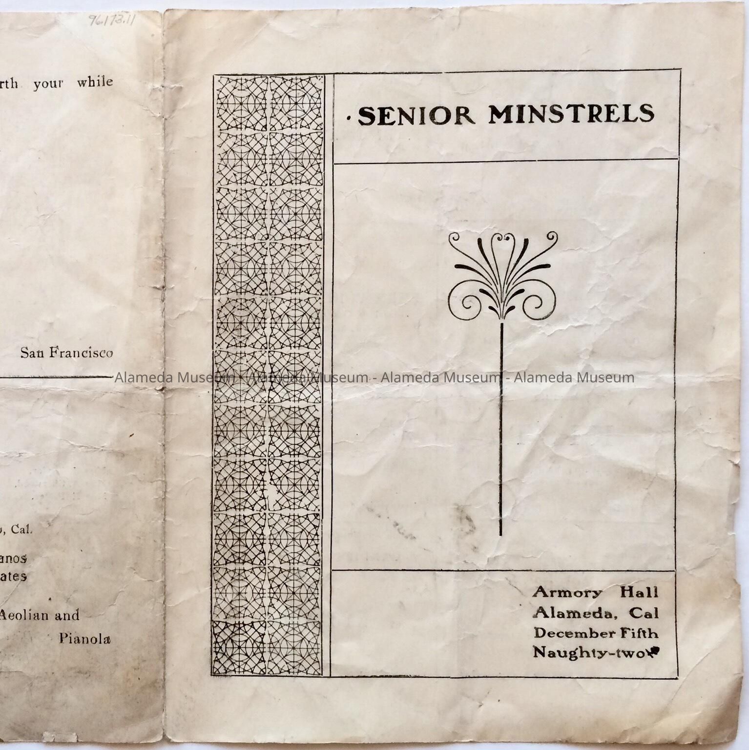 Program Alameda high School Musical Production 'Senior Minstrels', 1902Entry/Object ID