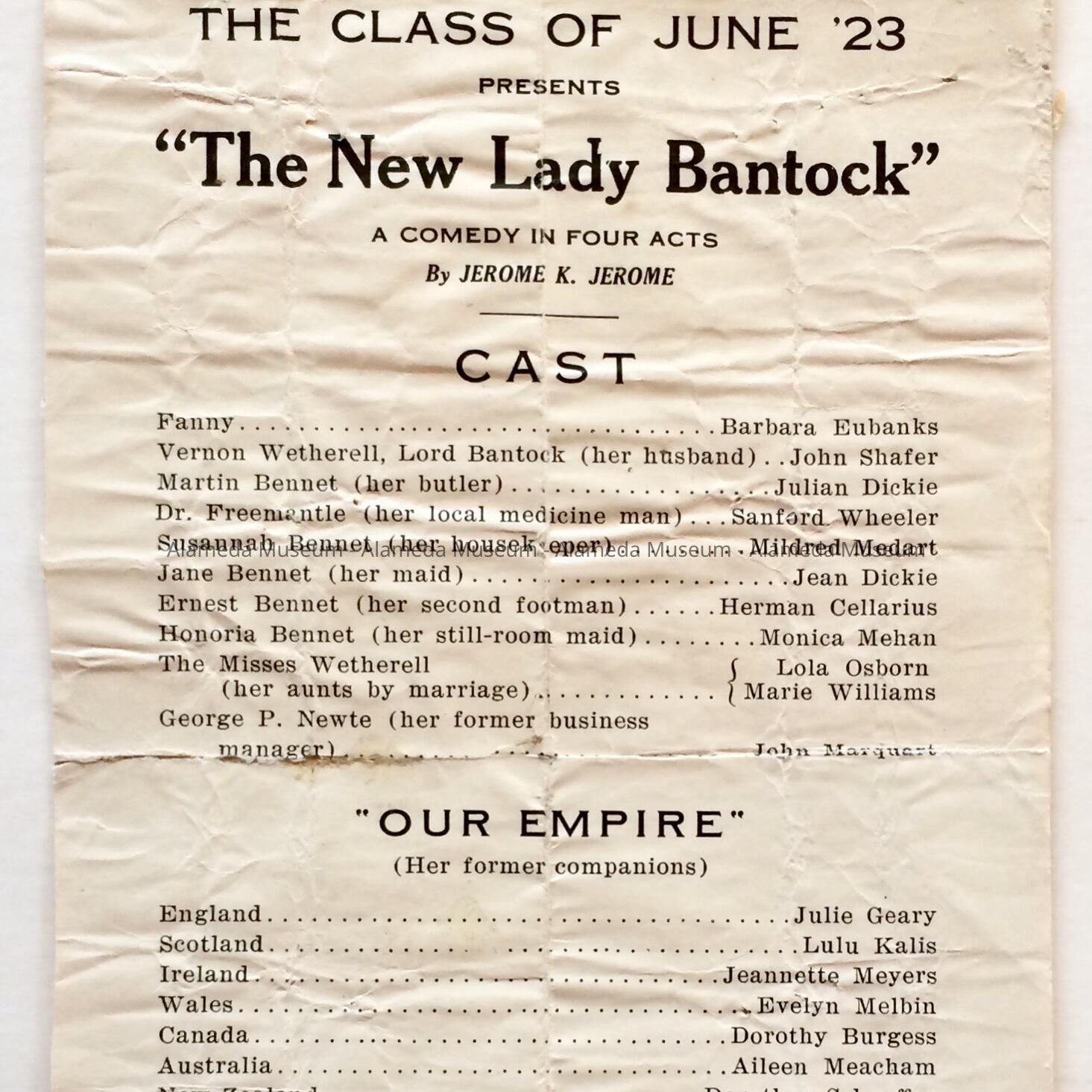 PROGRAM FOR A PLAY PRESENTED BY THE ALAMEDA HIGH SCHOOL CLASS OF JUNE 1923.
