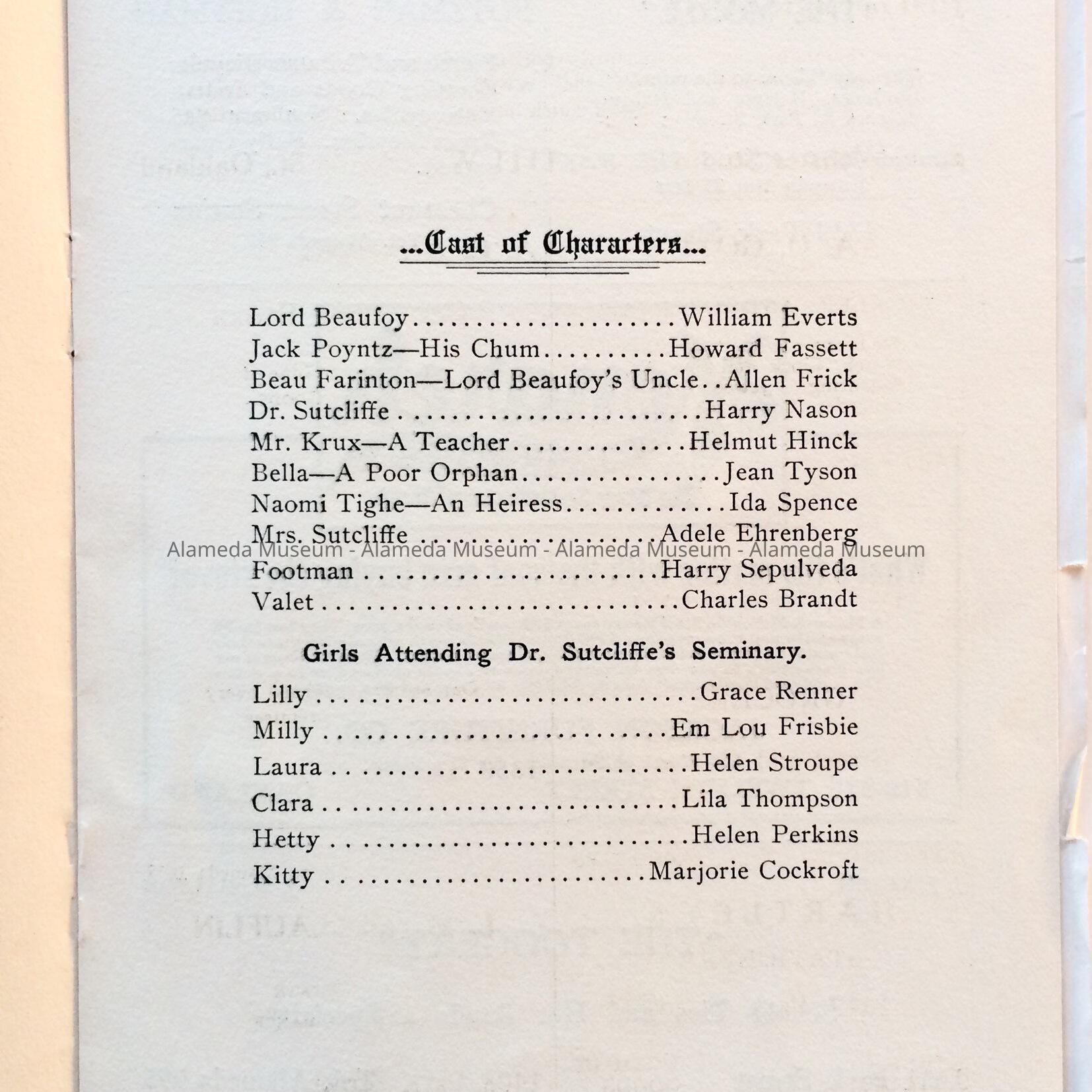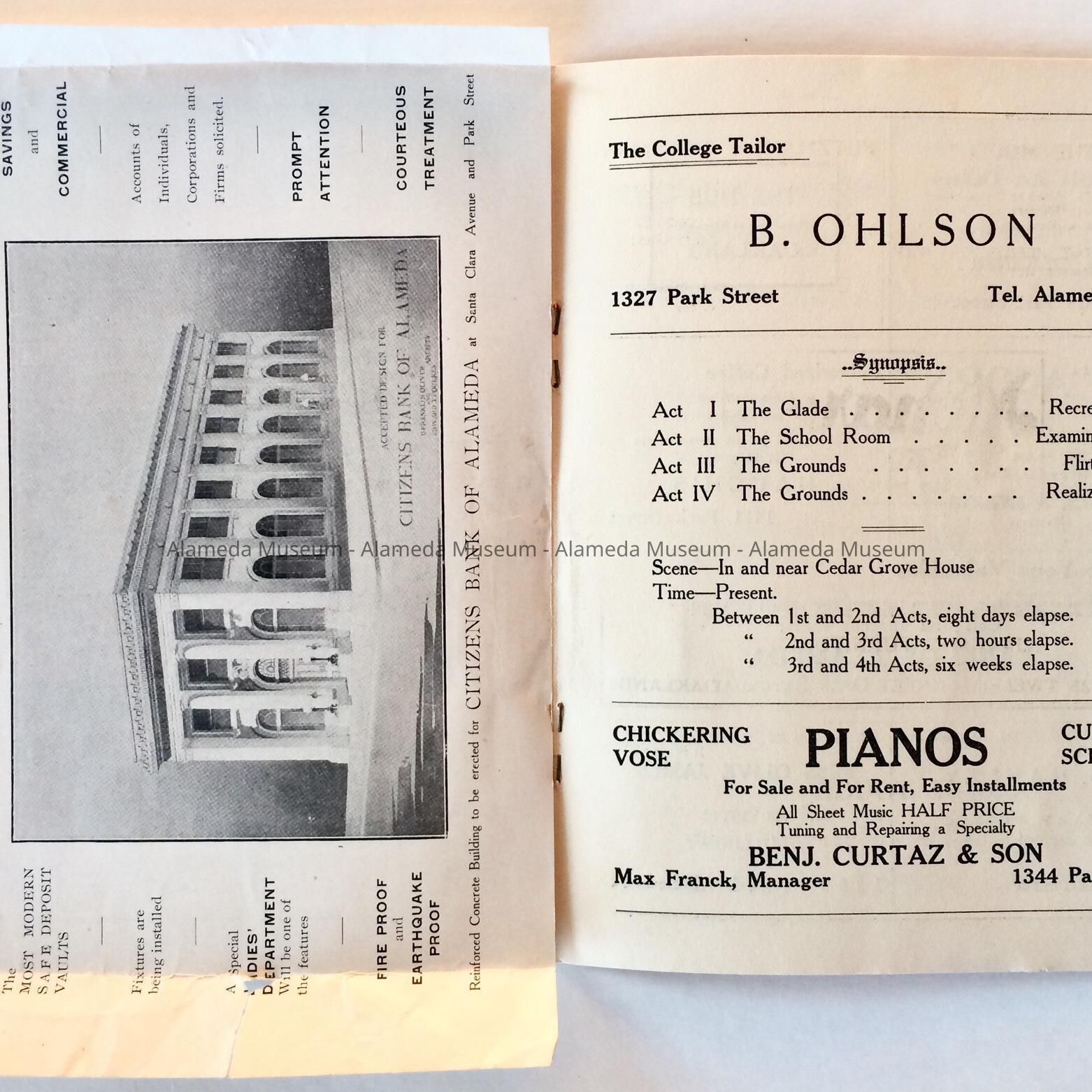 Program class play graduating Alameda High School class of 1906Entry/Object ID